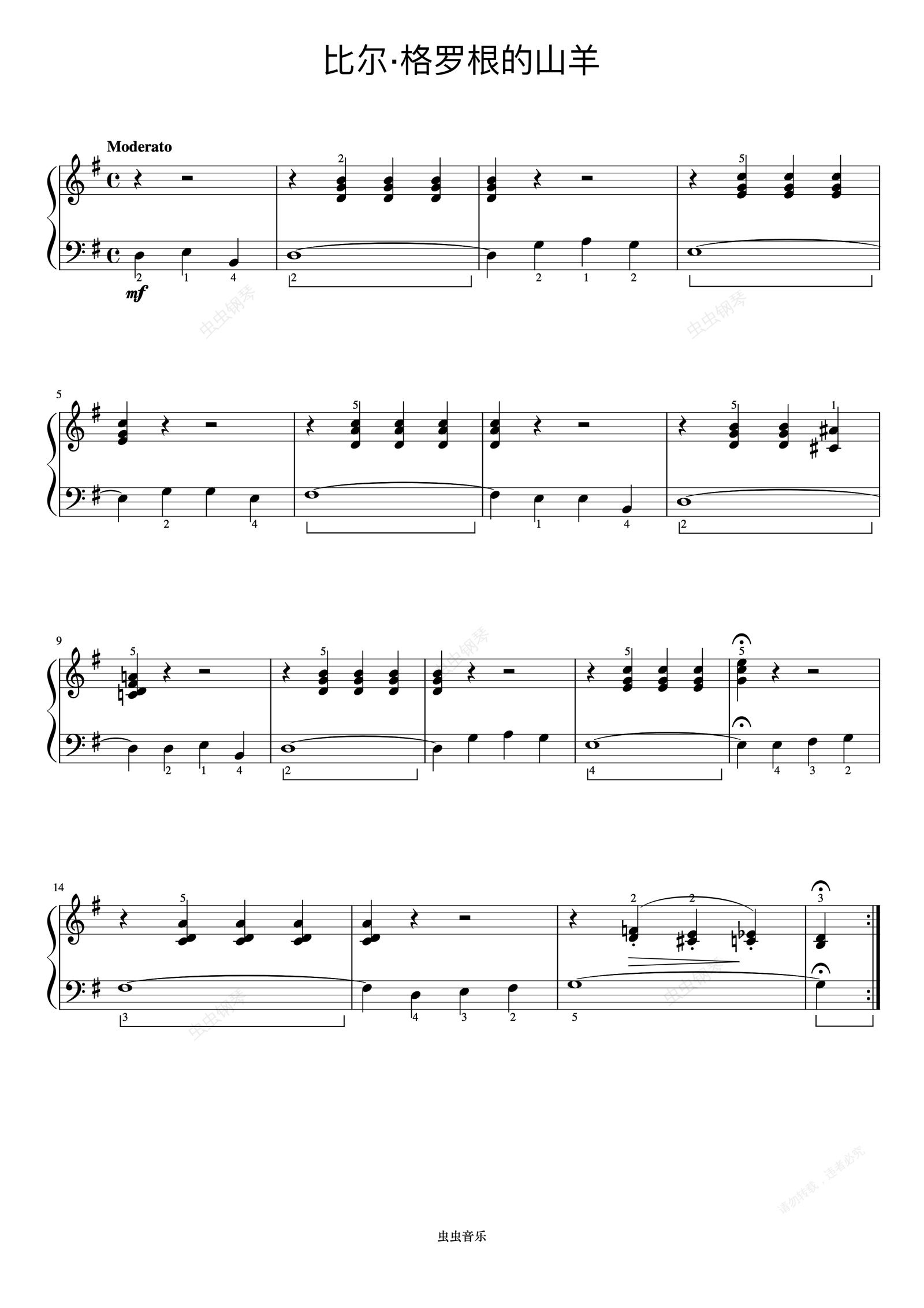 钢琴谱:比尔·格罗根的山羊《约翰汤普森 现代钢琴教程2》