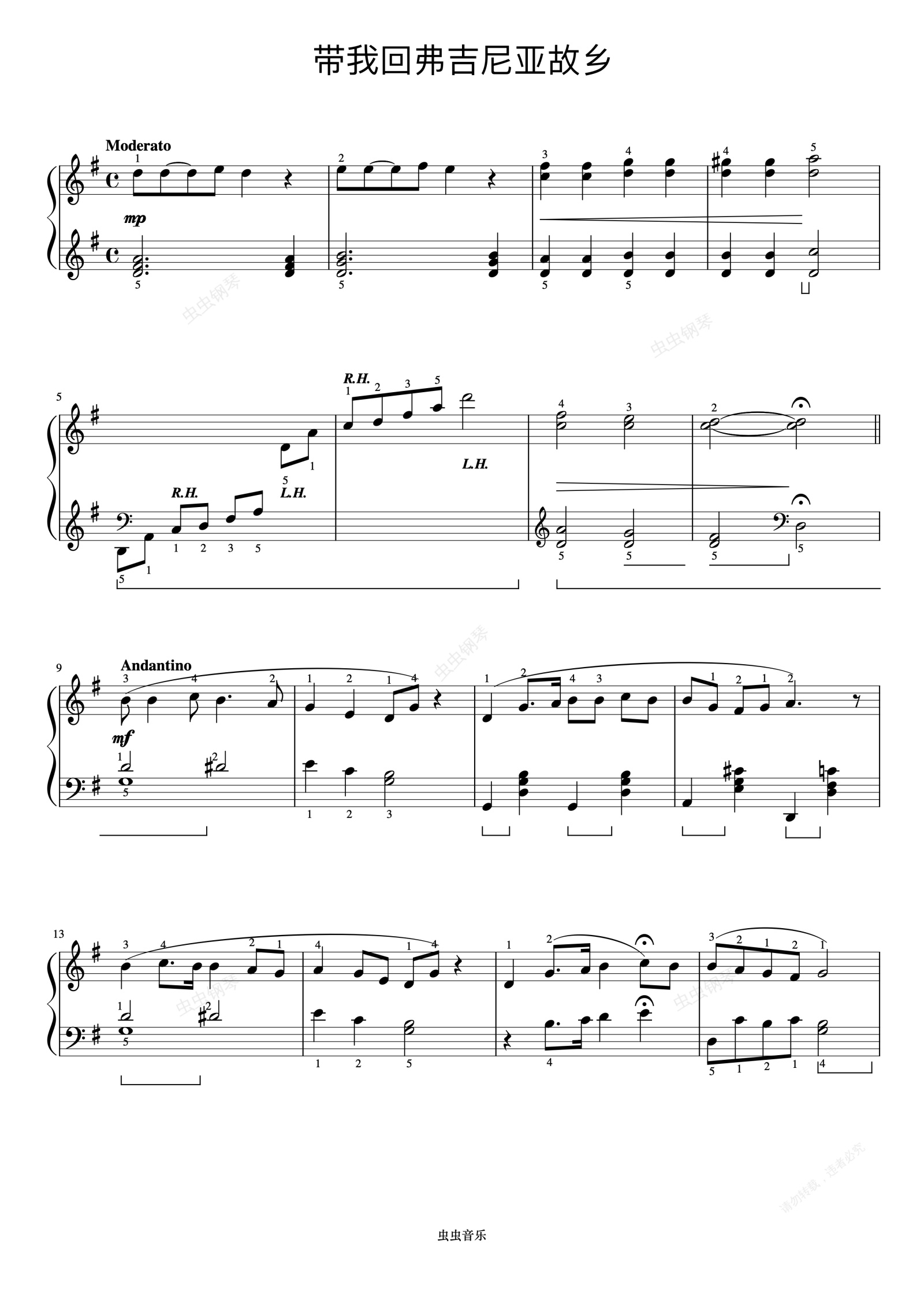 钢琴谱:带我回弗吉尼亚故乡《约翰汤普森 现代钢琴教程2》
