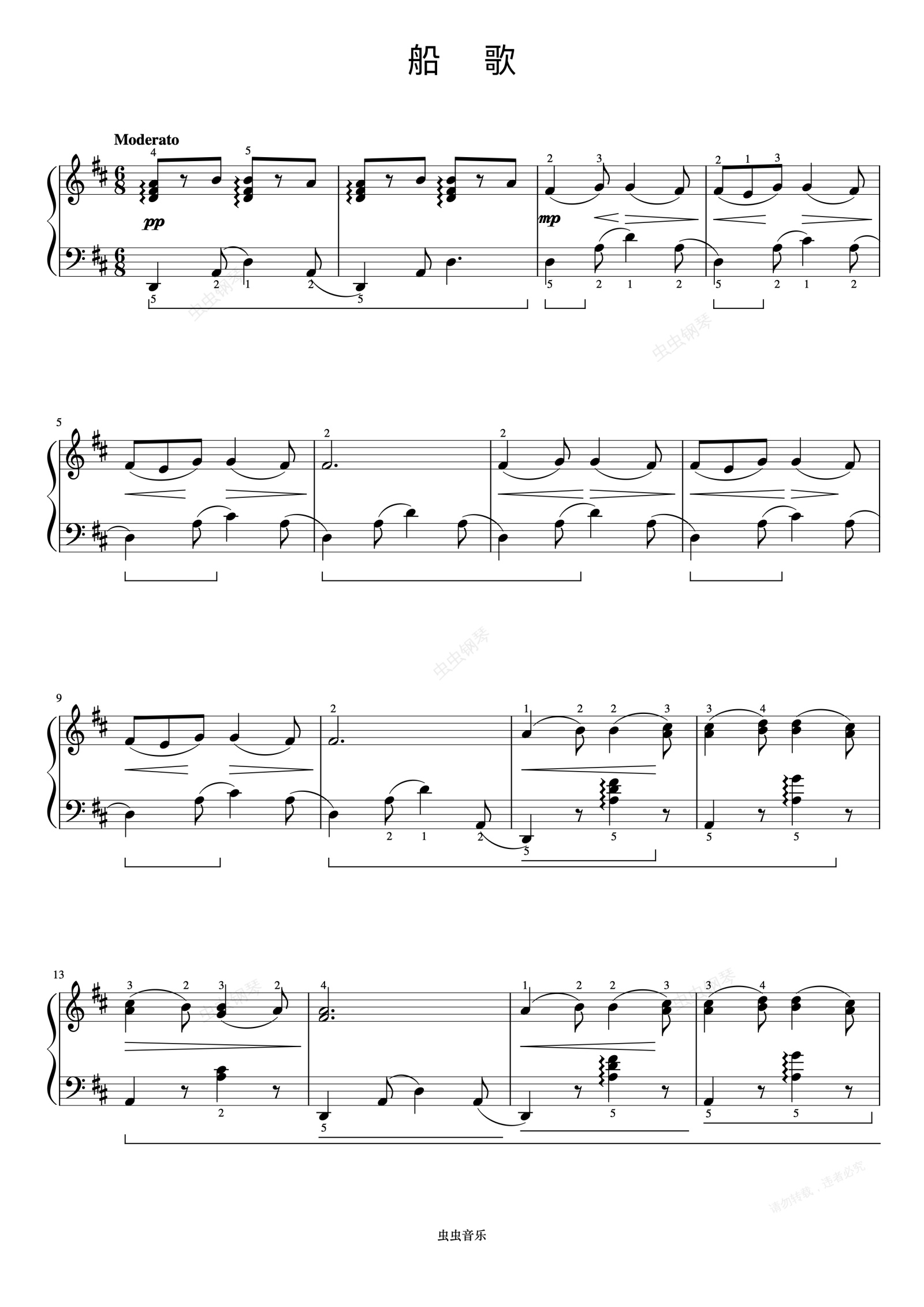 钢琴谱:船歌《约翰汤普森 现代钢琴教程2》