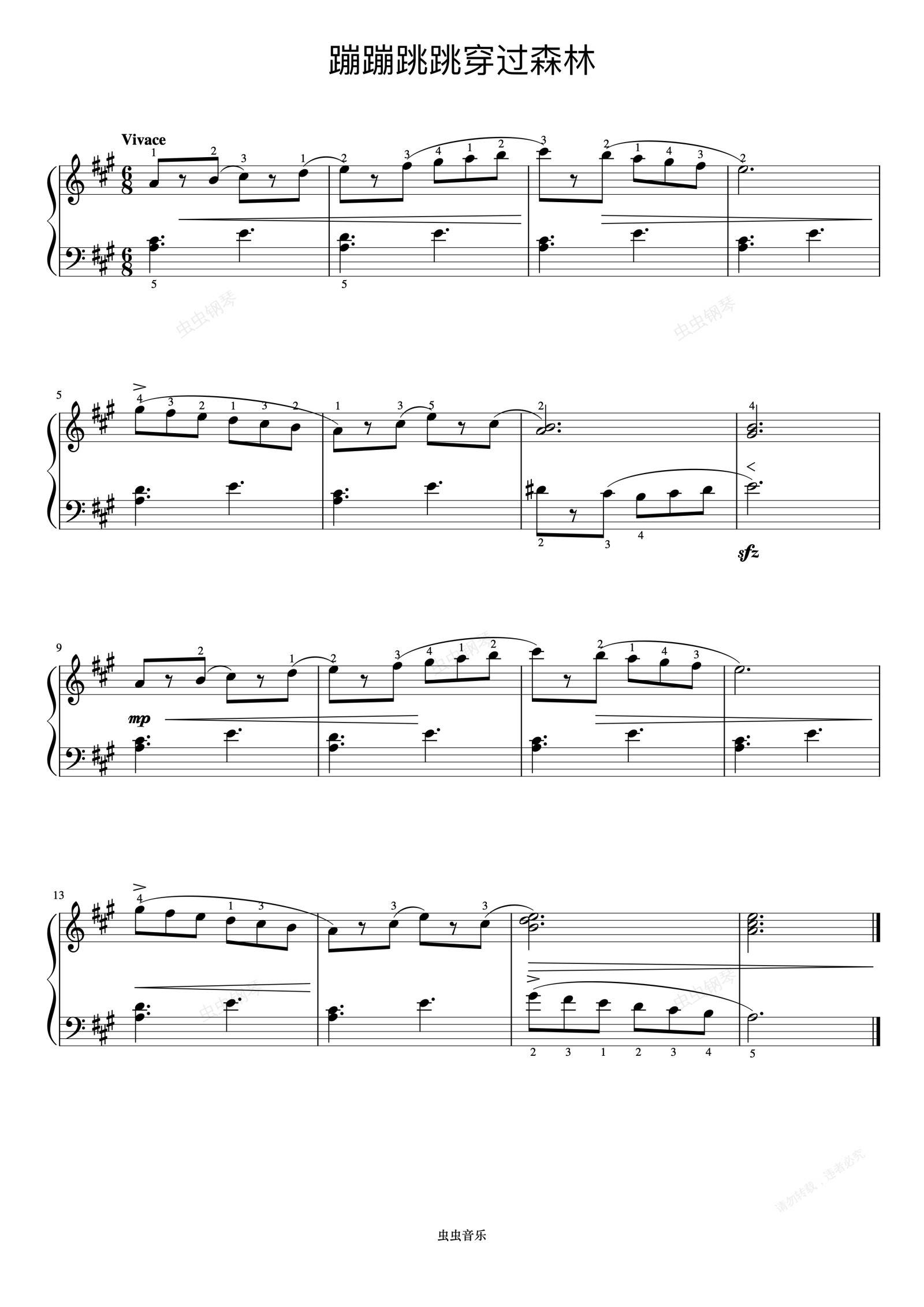 钢琴谱:蹦蹦跳跳穿过森林《约翰汤普森 现代钢琴教程2》