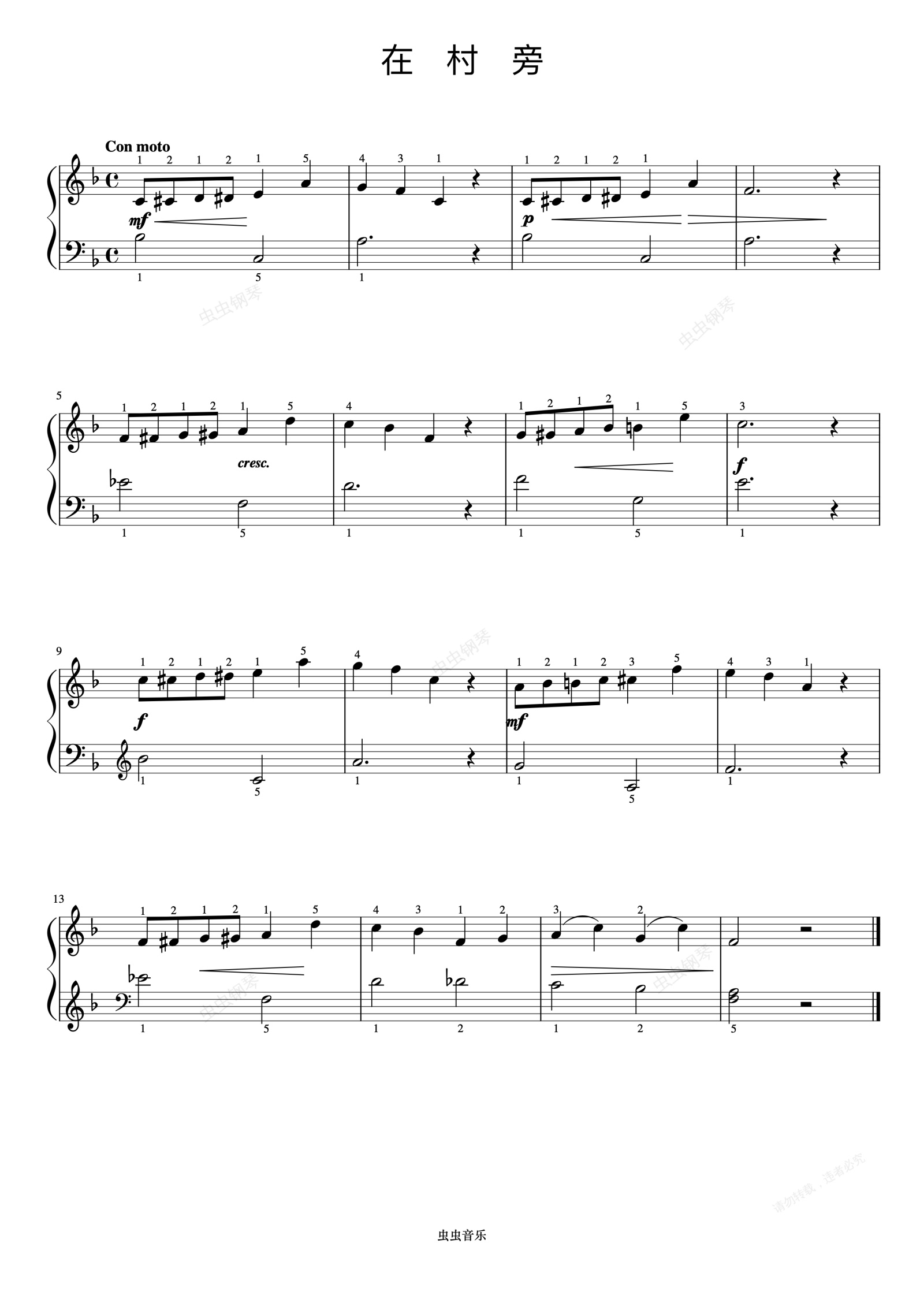 钢琴谱:在村旁《约翰汤普森 现代钢琴教程2》
