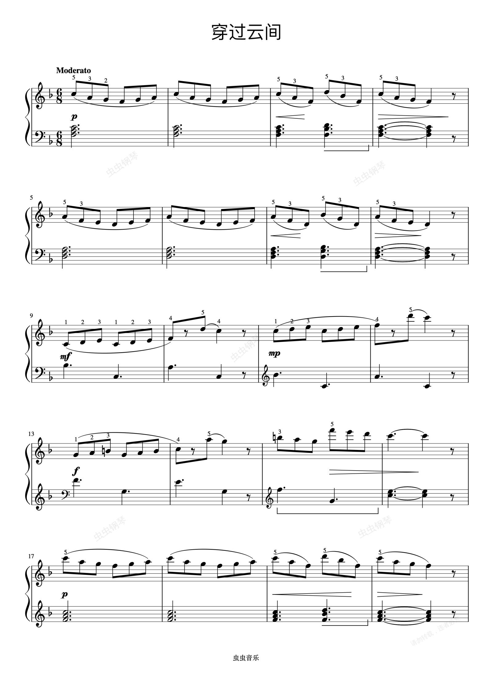 钢琴谱:穿过云间《约翰汤普森 简易钢琴教程 5》
