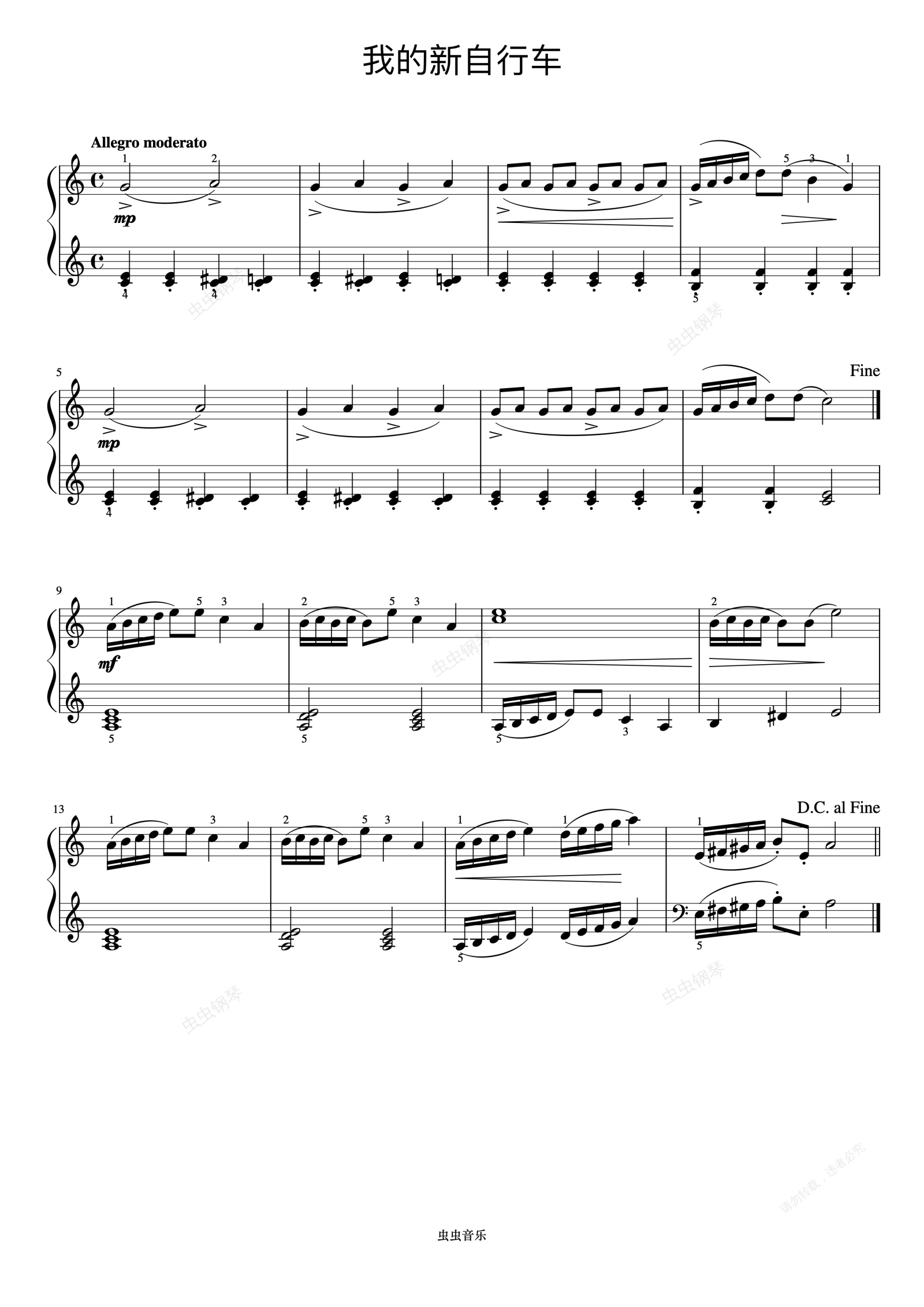 钢琴谱:我的新自行车《约翰汤普森 简易钢琴教程 5》