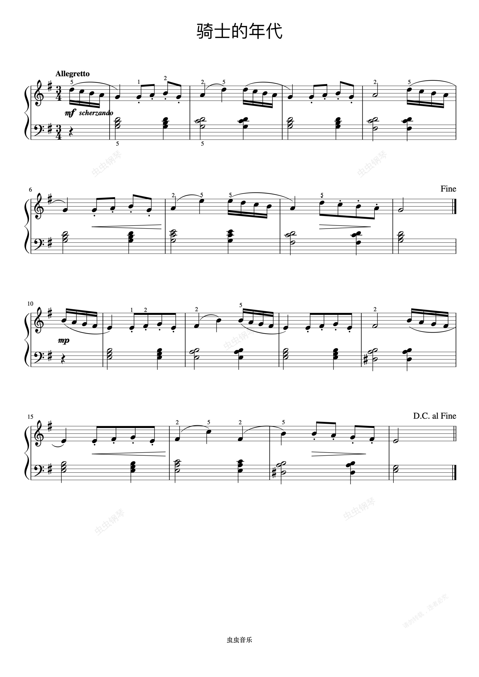 钢琴谱:骑士的年代《约翰汤普森 简易钢琴教程 5》