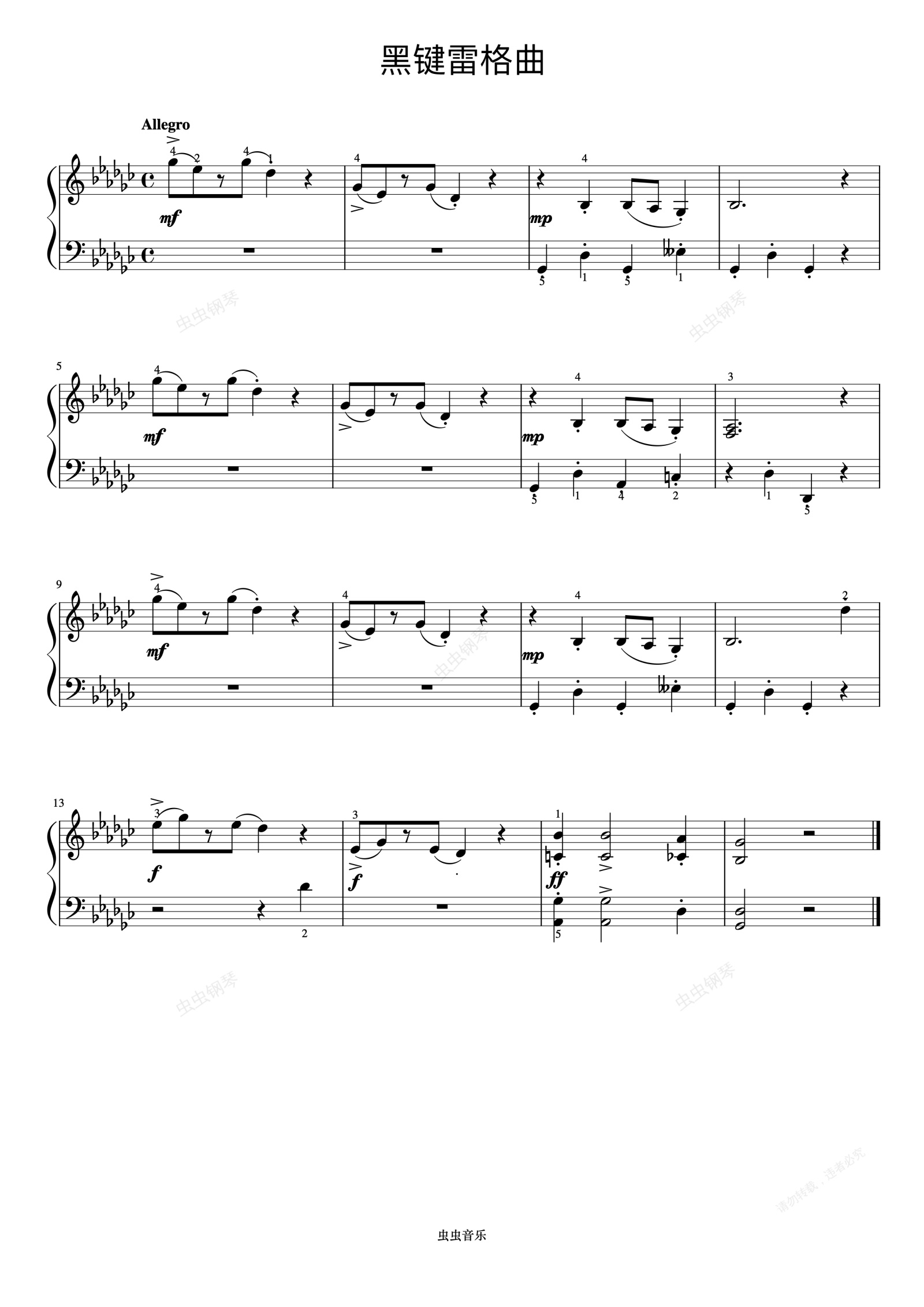 钢琴谱:黑键雷格曲《约翰汤普森 简易钢琴教程 5》