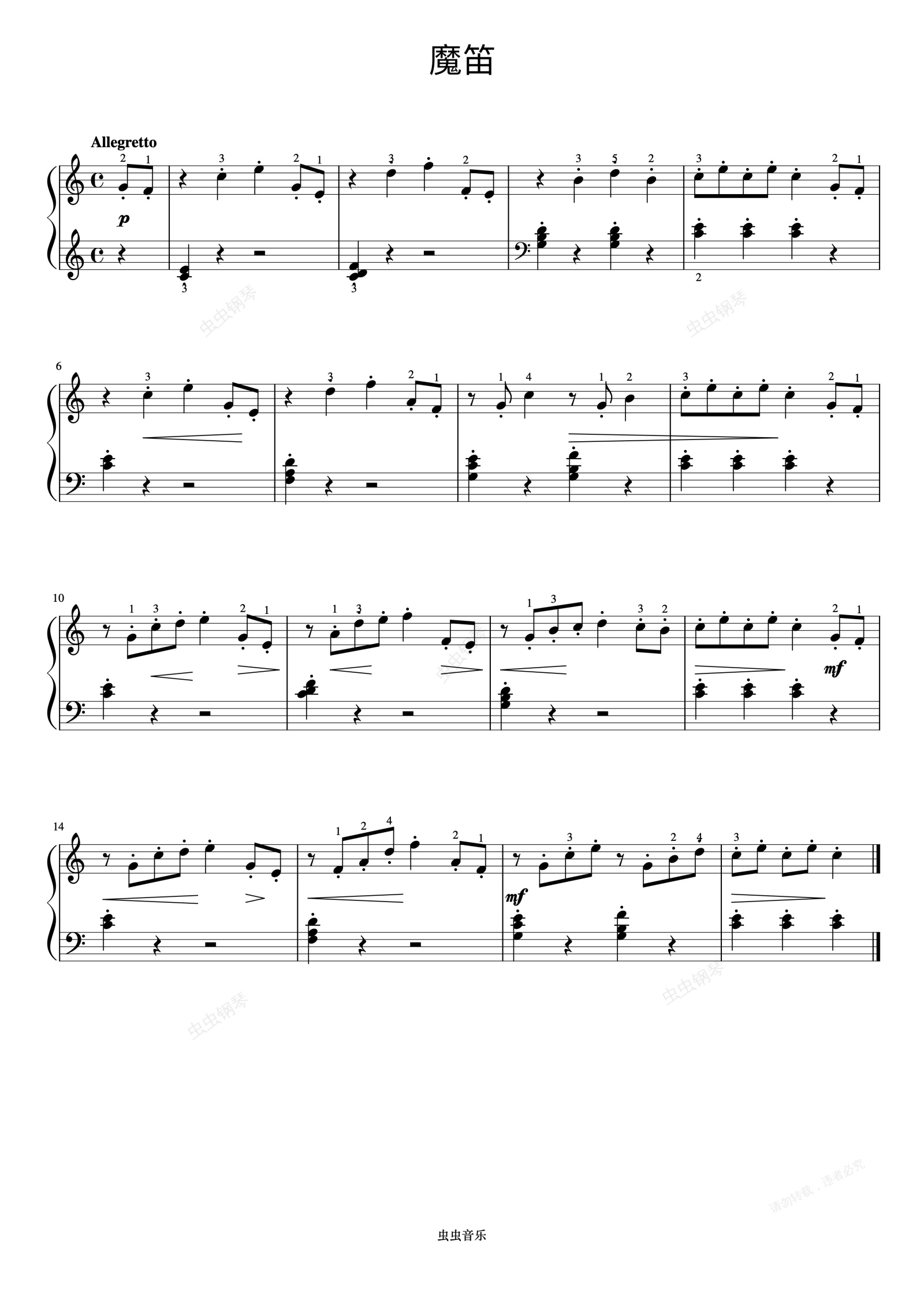 钢琴谱:魔笛《约翰汤普森 简易钢琴教程 5》