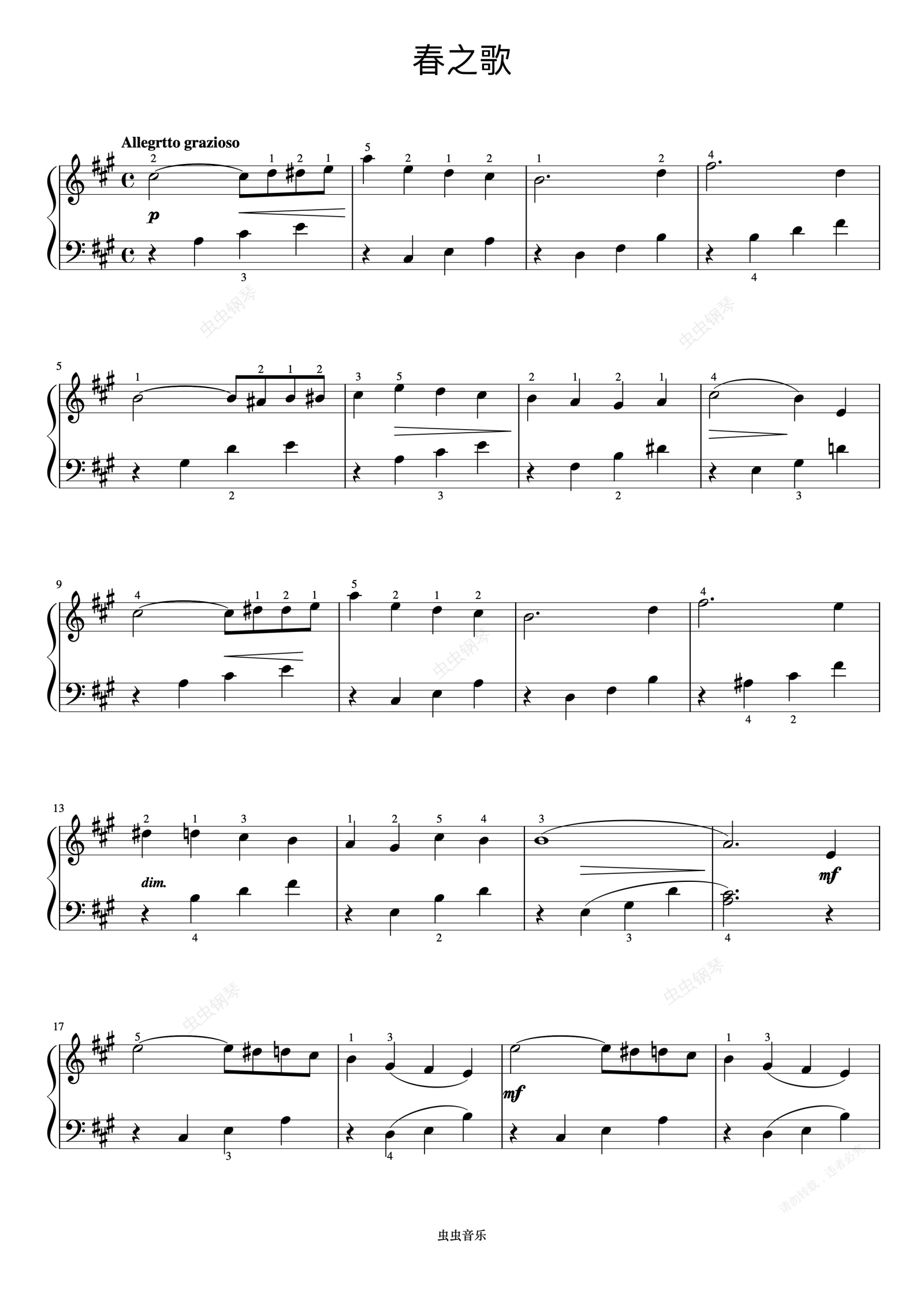 钢琴谱:春之歌《约翰汤普森 简易钢琴教程 5》