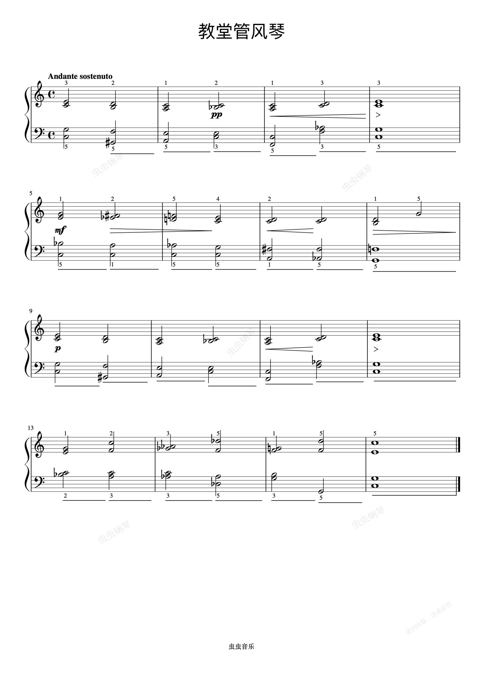 钢琴谱:教堂管风琴《约翰汤普森 简易钢琴教程 5》