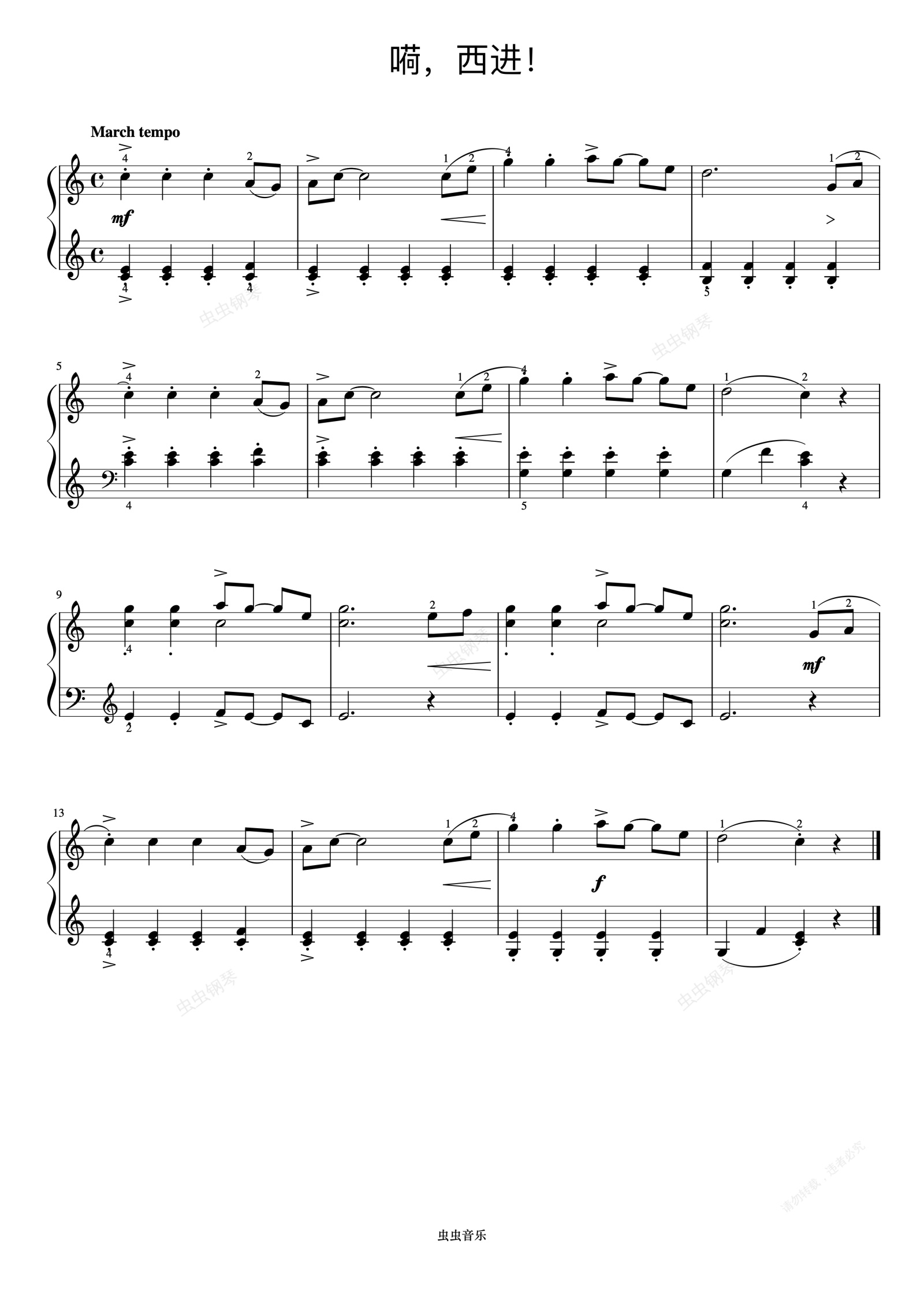 钢琴谱:嗬,西进!《约翰汤普森 简易钢琴教程 5》