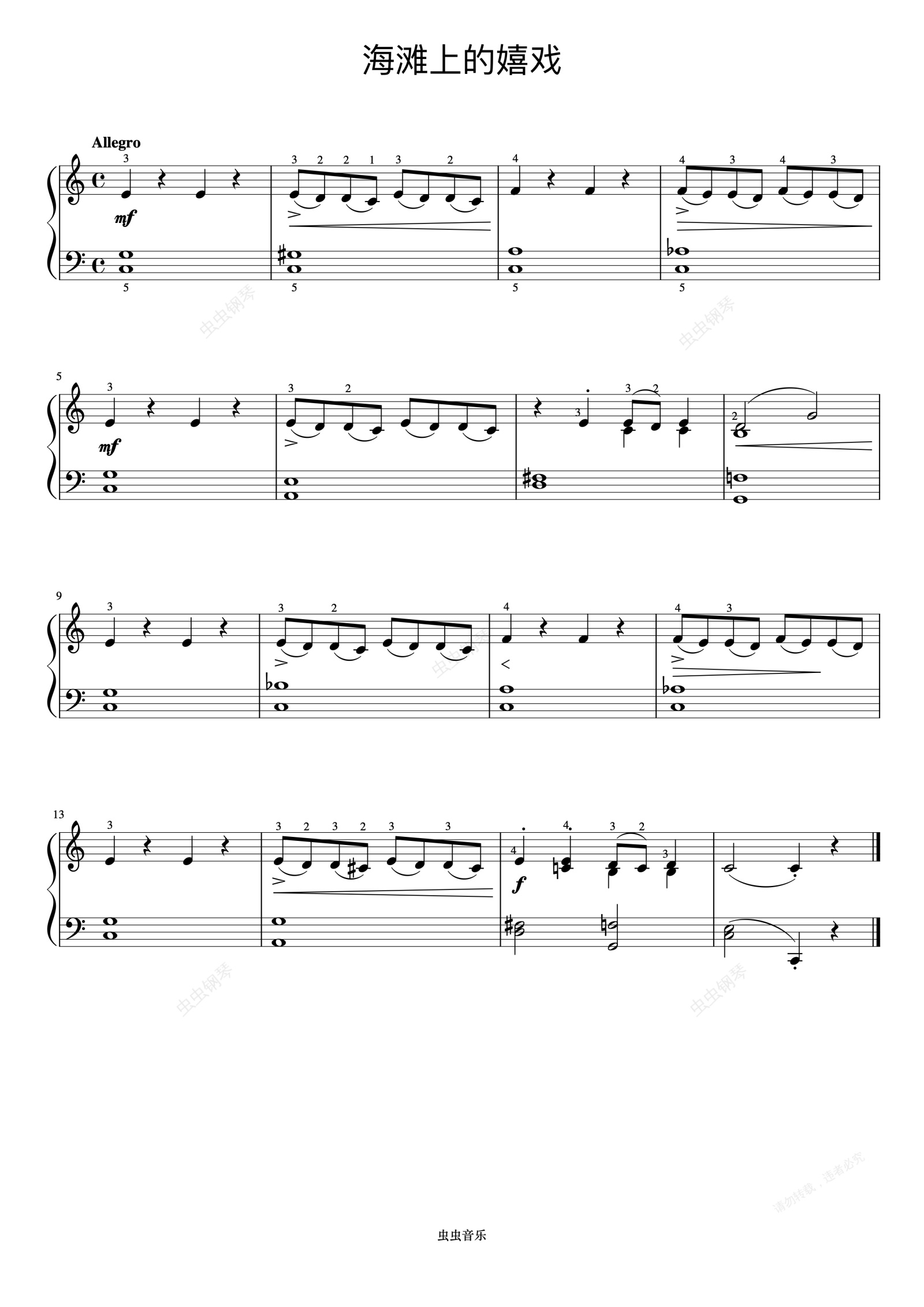 钢琴谱:海滩上的嬉戏《约翰汤普森 简易钢琴教程 5》