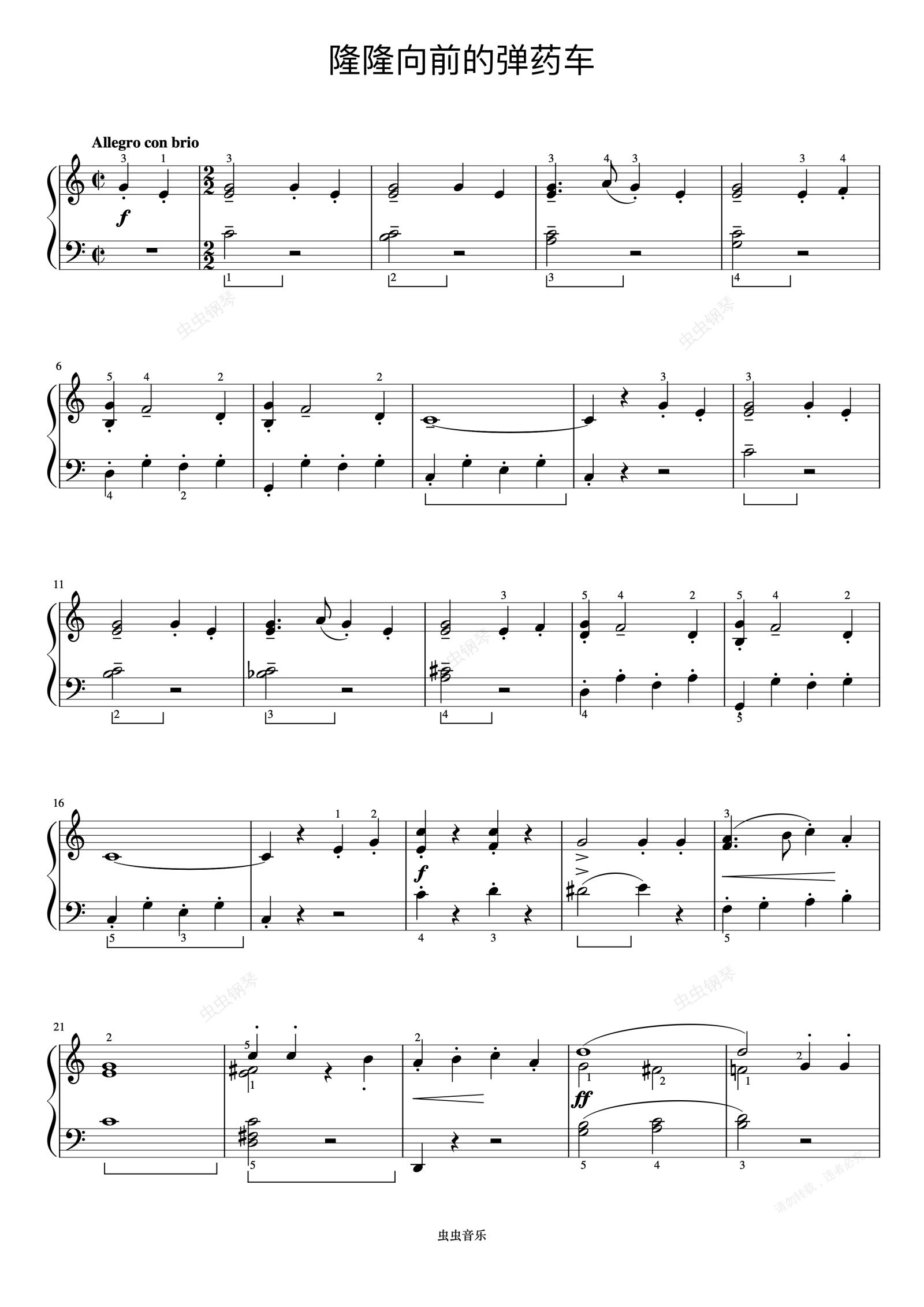 钢琴谱:隆隆向前的弹药车《约翰汤普森 简易钢琴教程 5》