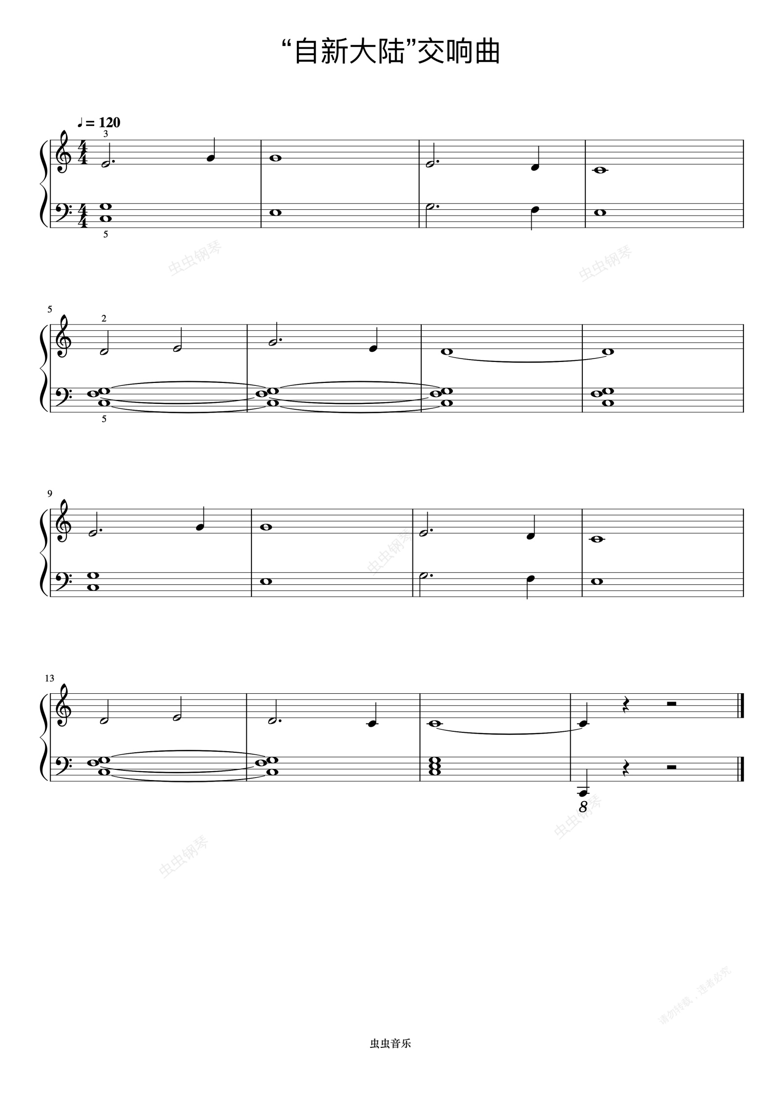 钢琴谱:“自新大陆”交响曲《约翰汤普森 简易钢琴教程 2》
