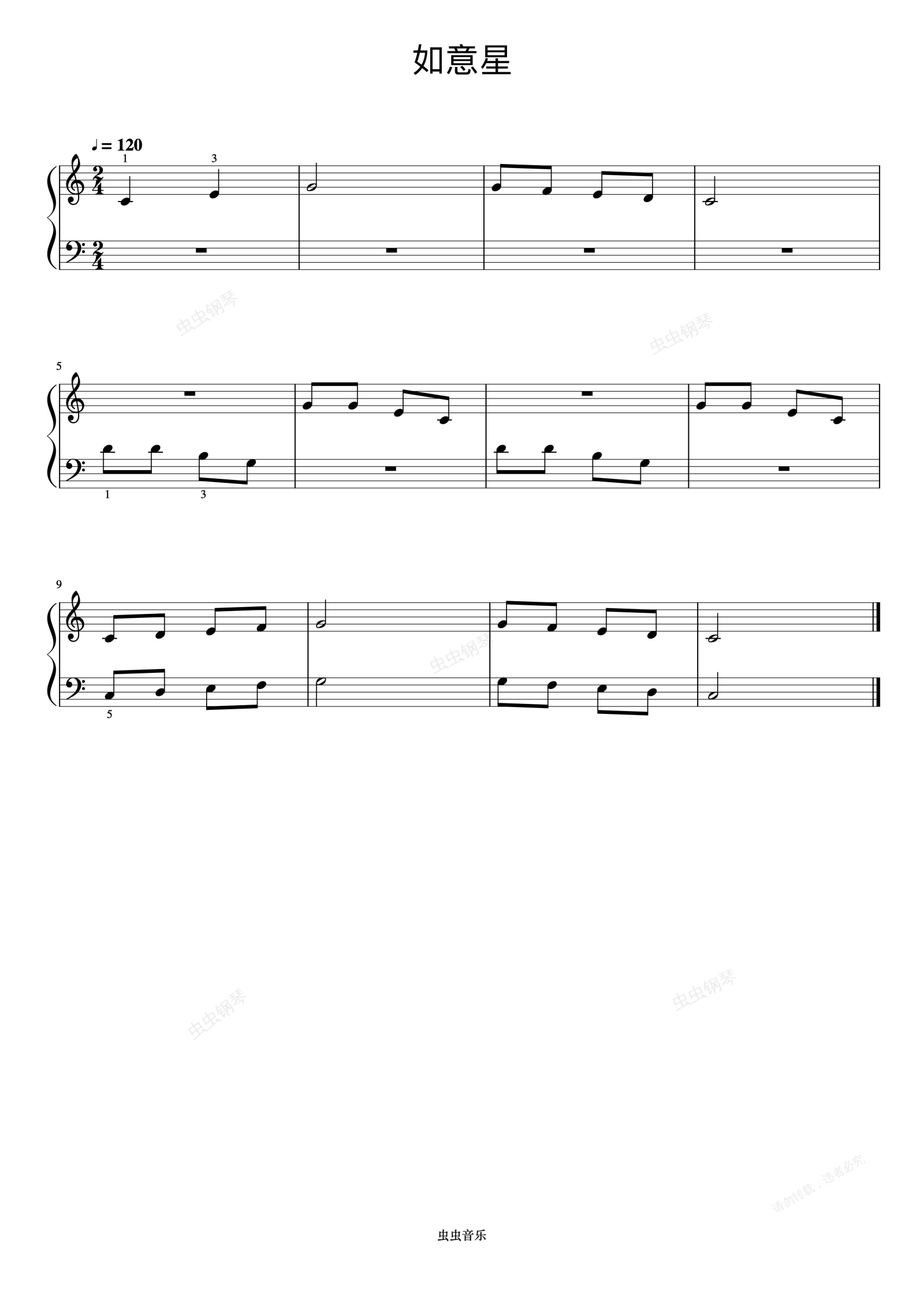 钢琴谱:祝愿星《约翰汤普森 简易钢琴教程 2》