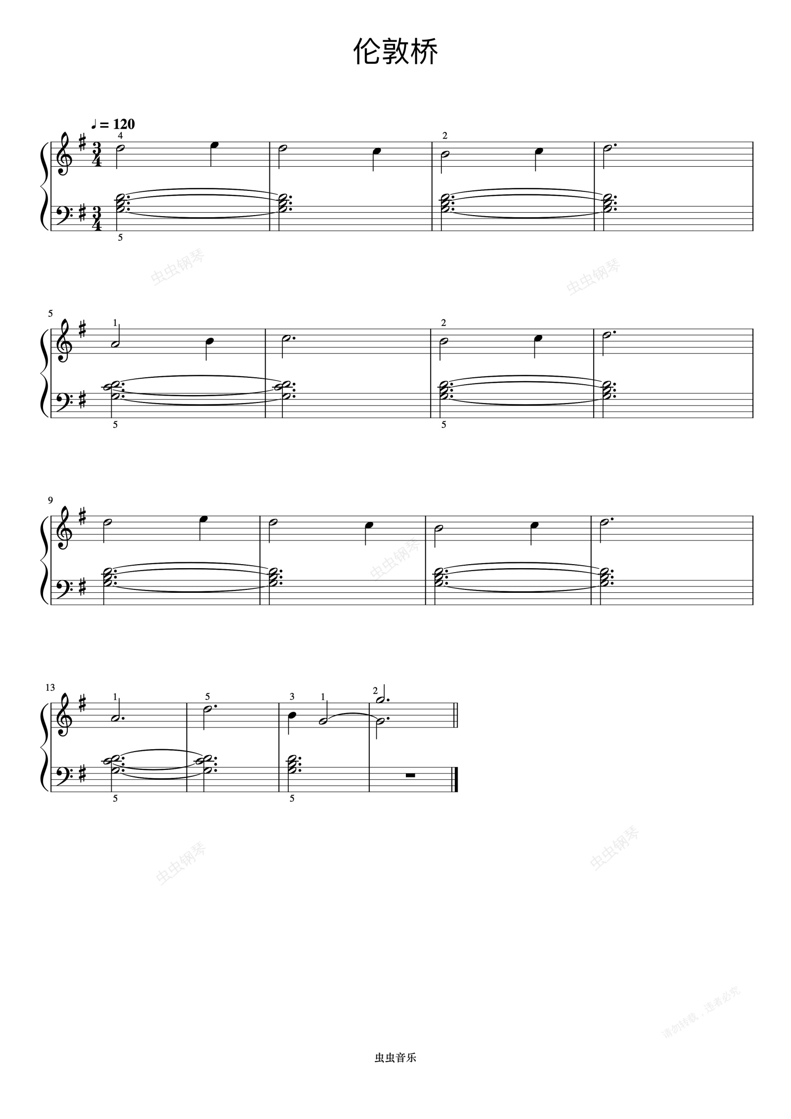 钢琴谱:伦敦桥要塌了《约翰汤普森 简易钢琴教程 2》