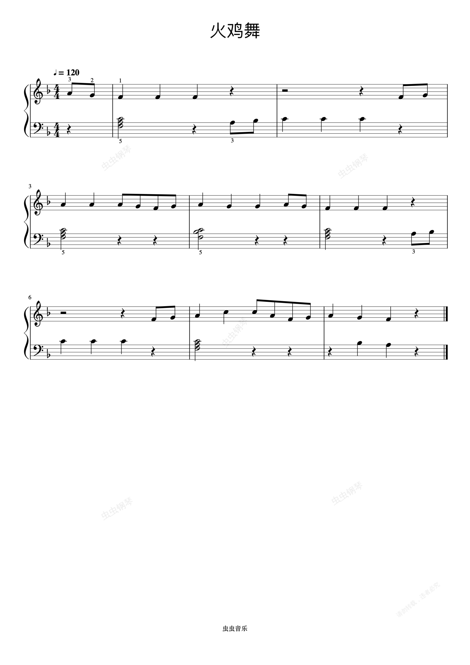 钢琴谱:稻草堆中的火鸡《约翰汤普森 简易钢琴教程 2》