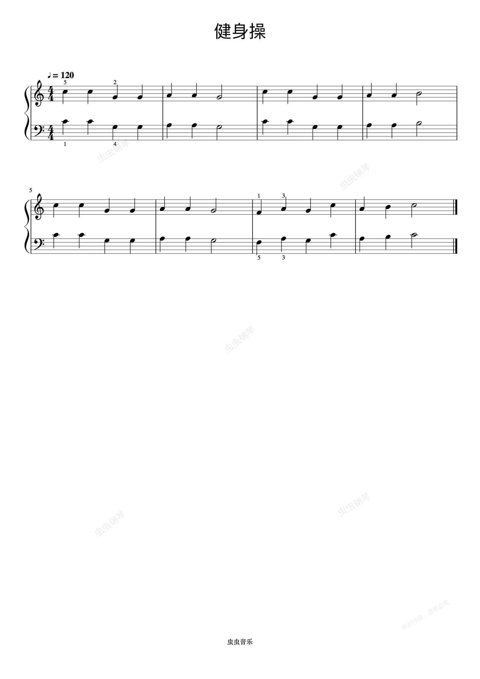 钢琴谱:健身操《约翰汤普森 简易钢琴教程 2》