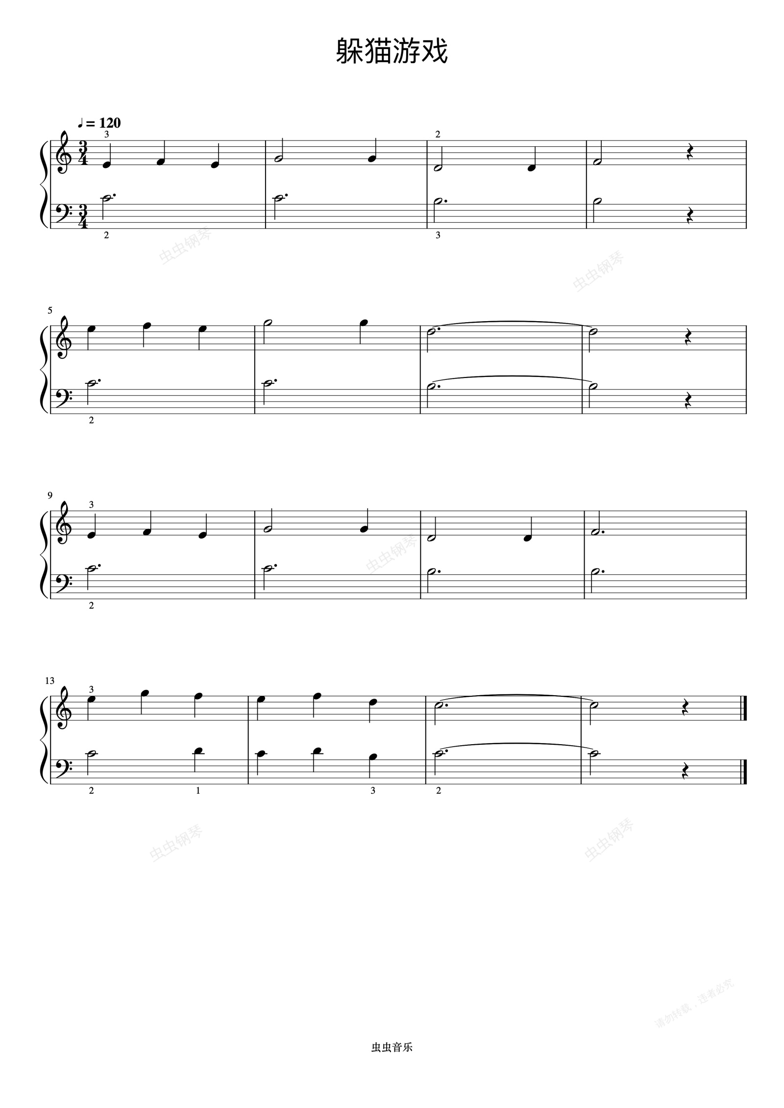 钢琴谱:捉迷藏《约翰汤普森 简易钢琴教程 2》