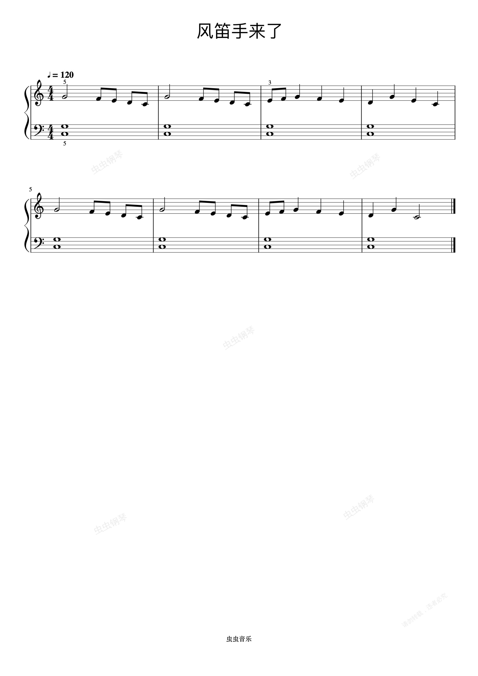 钢琴谱:风笛手来了《约翰汤普森 简易钢琴教程 2》