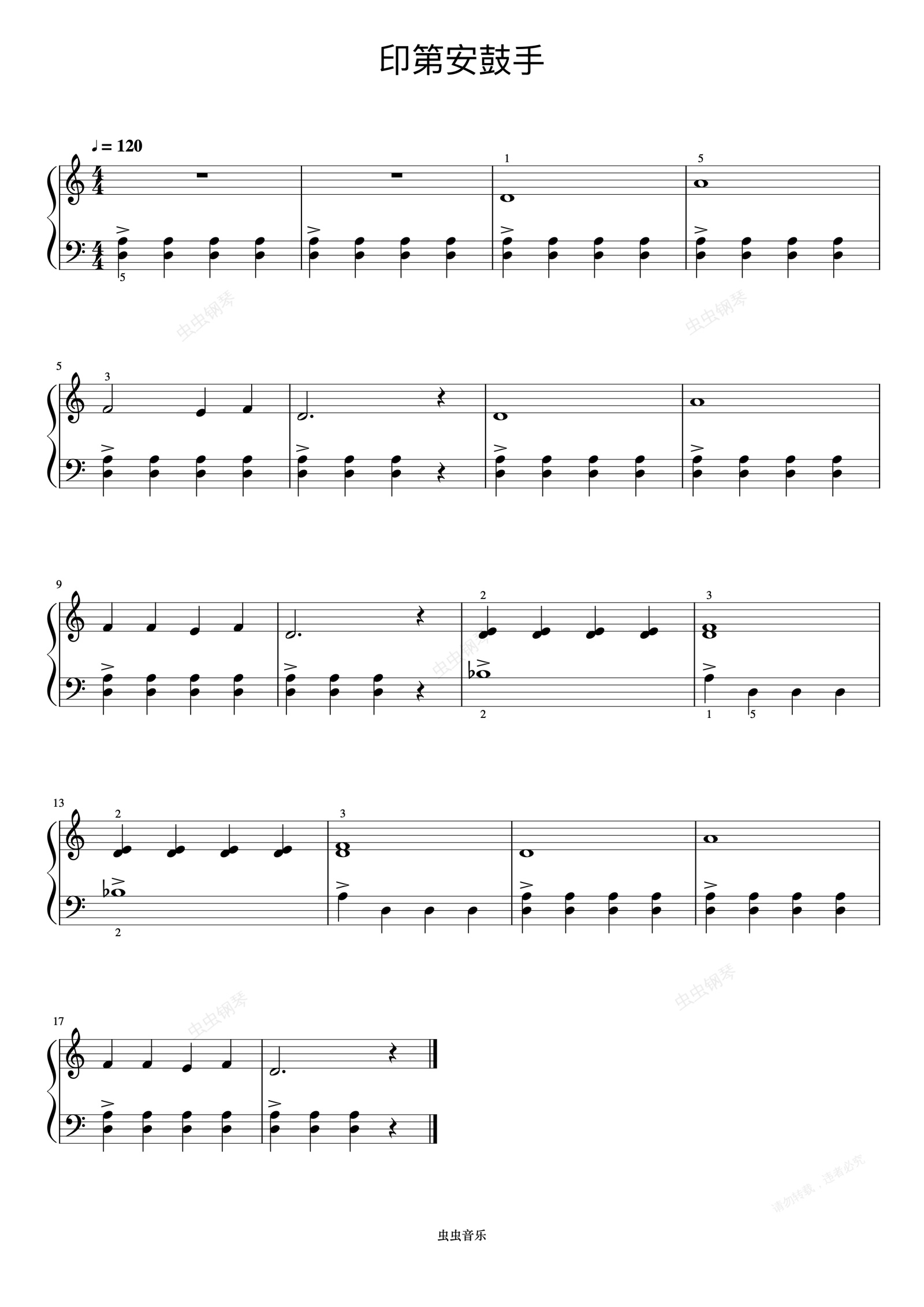 钢琴谱:印第安鼓《约翰汤普森 简易钢琴教程 2》