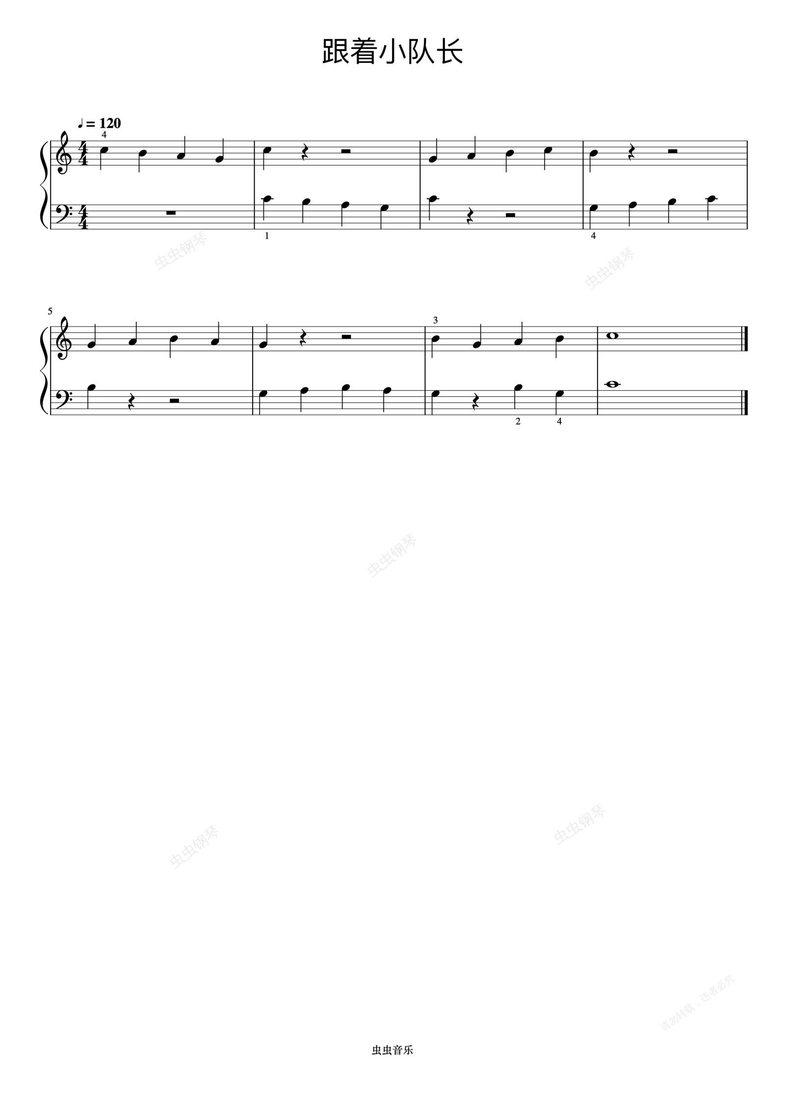钢琴谱:跟着小队长《约翰汤普森 简易钢琴教程 2》