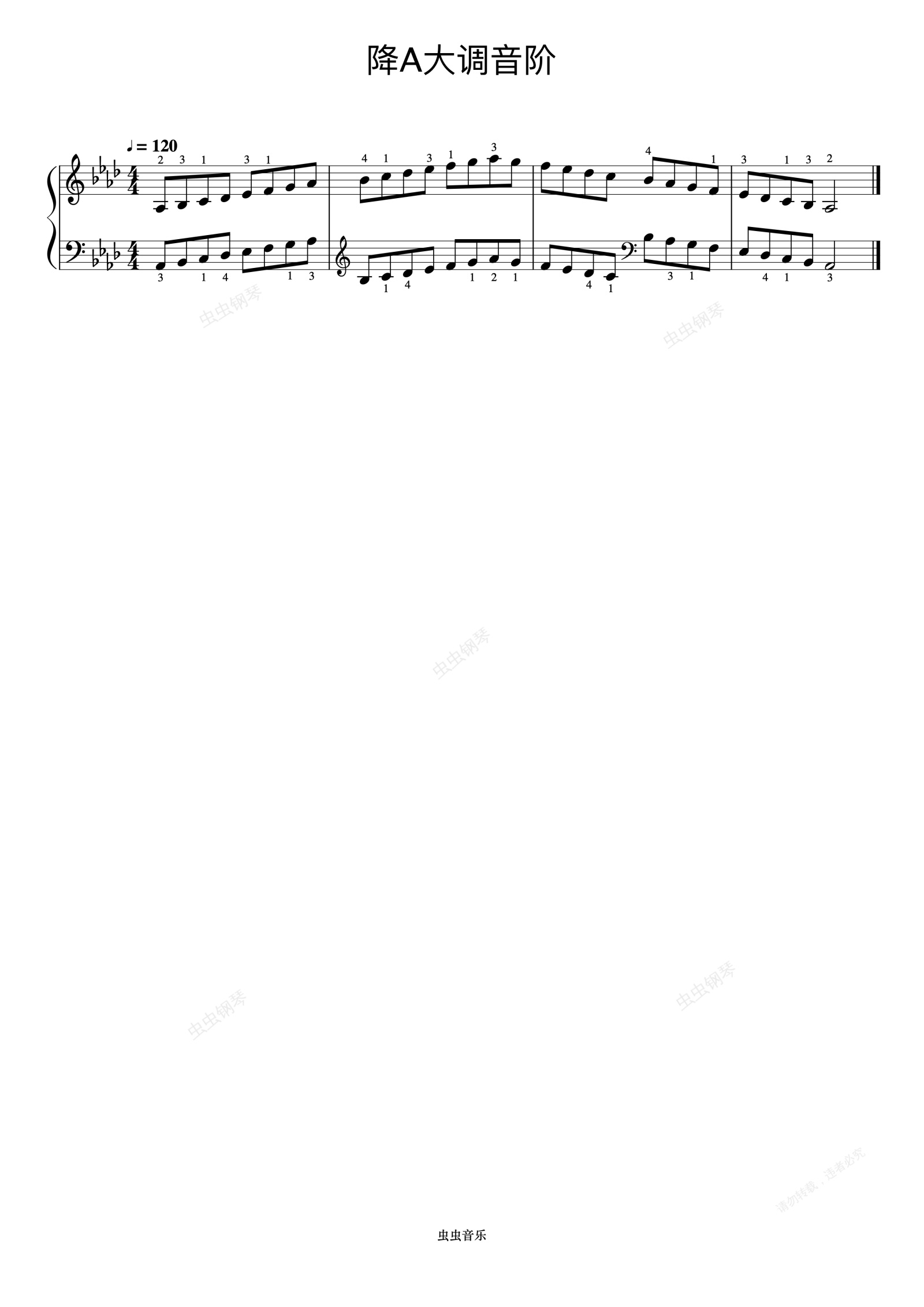钢琴谱:降A大调音阶