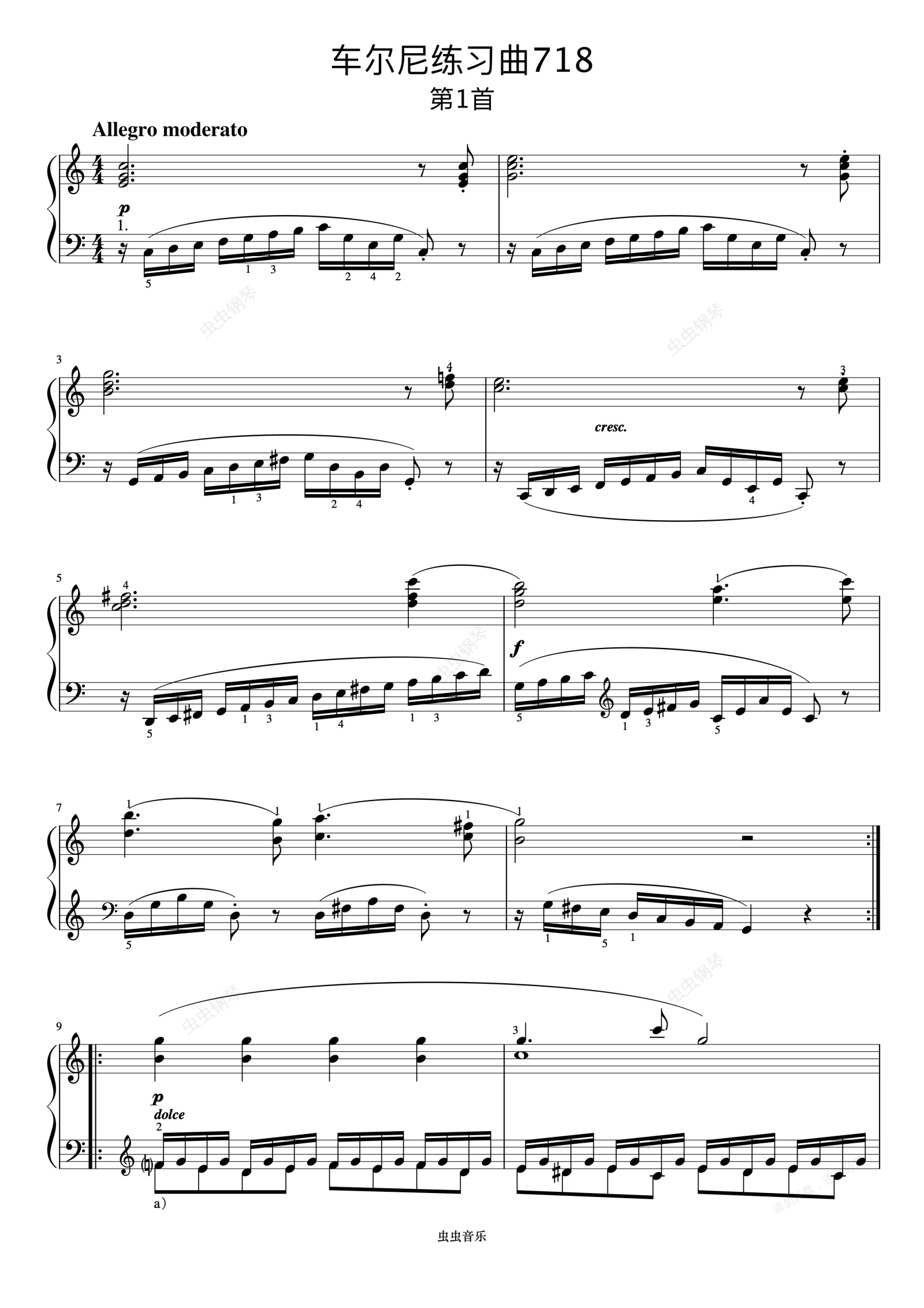 钢琴谱:第1首《车尔尼左手练习曲 作品718》