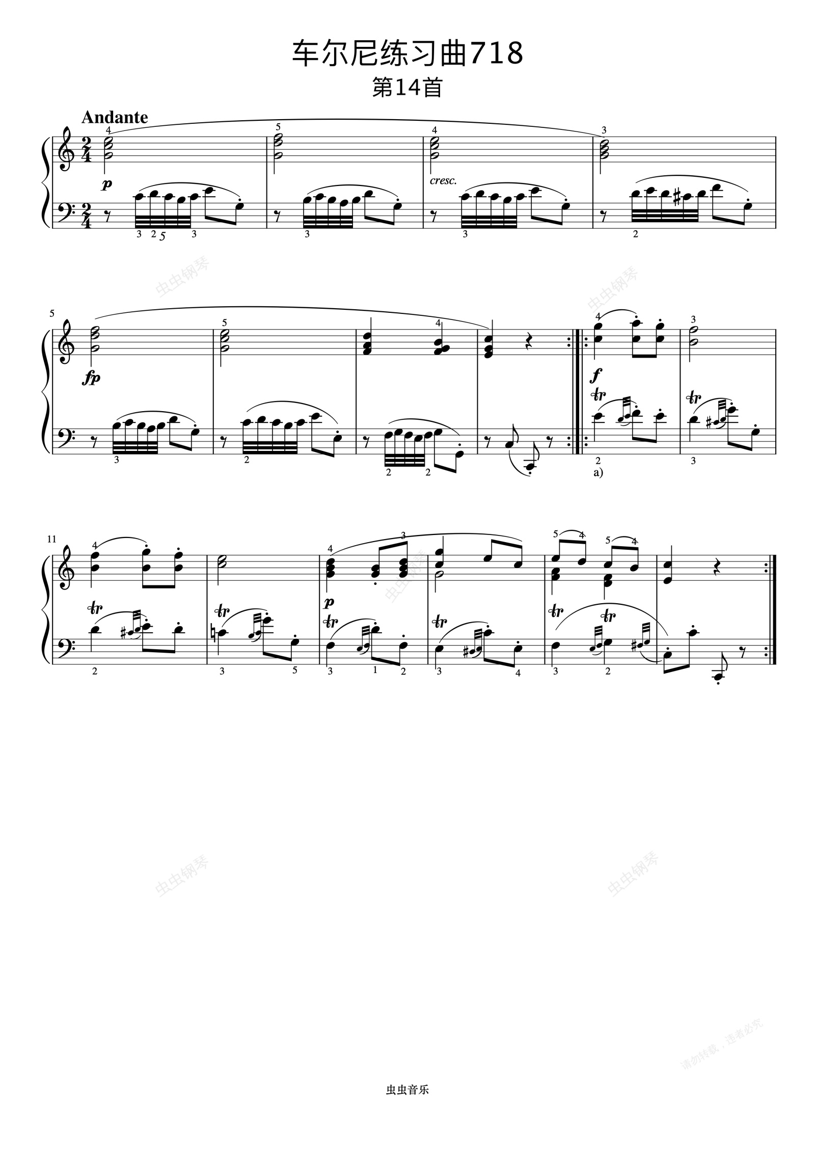 钢琴谱:第14首《车尔尼左手练习曲 作品718》