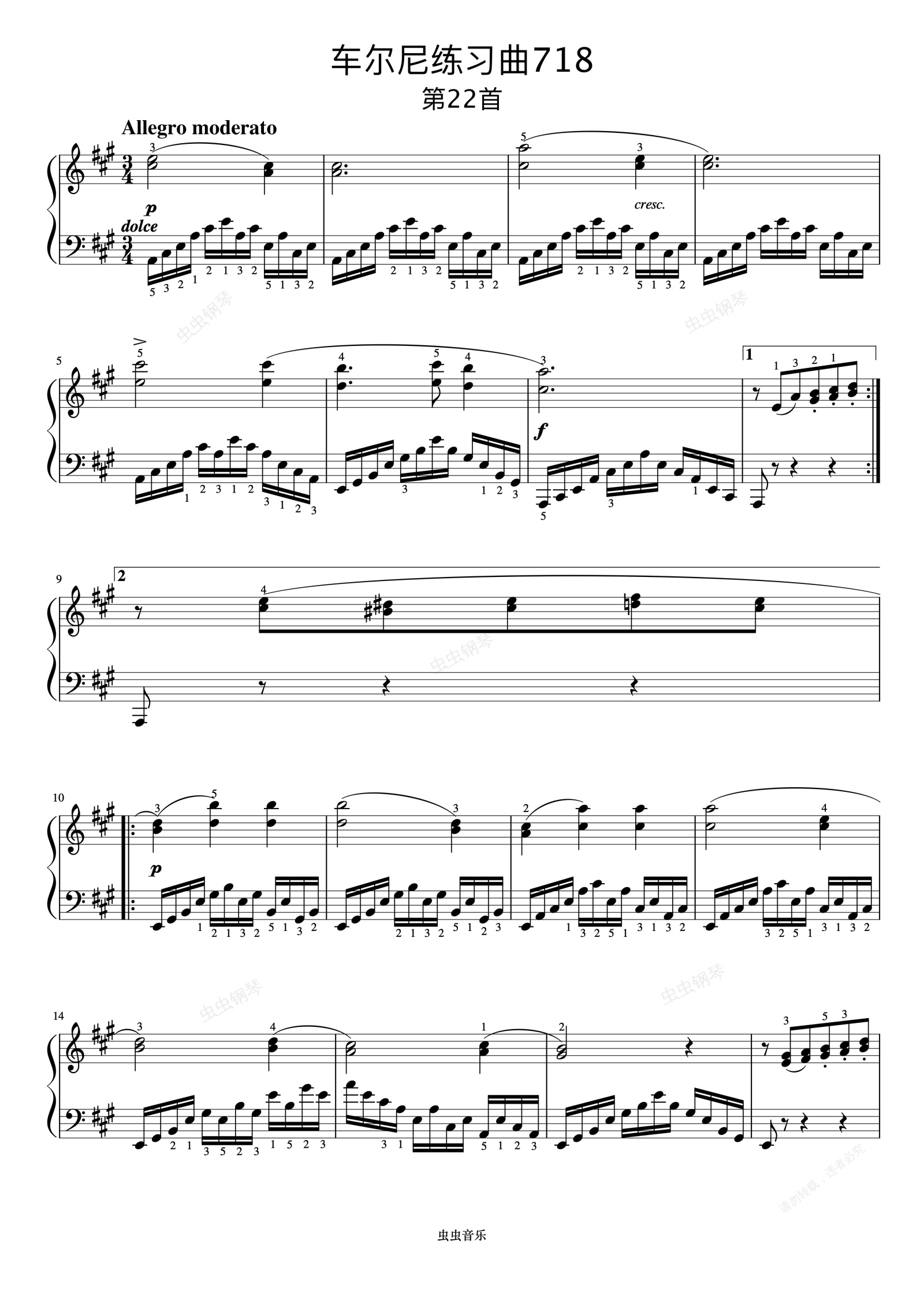 钢琴谱:第22首《车尔尼左手练习曲 作品718》