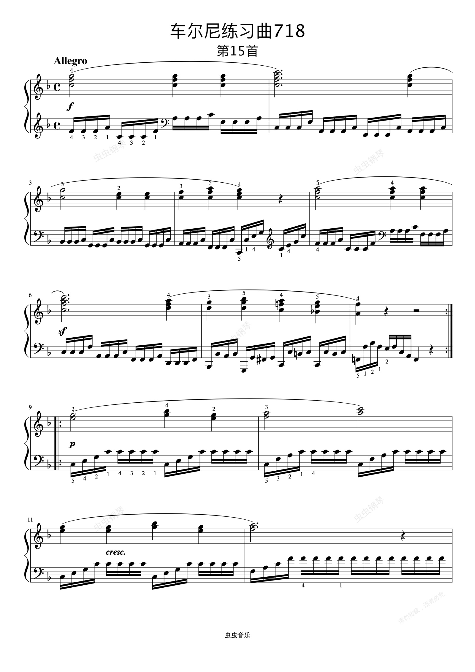 钢琴谱:第15首《车尔尼左手练习曲 作品718》