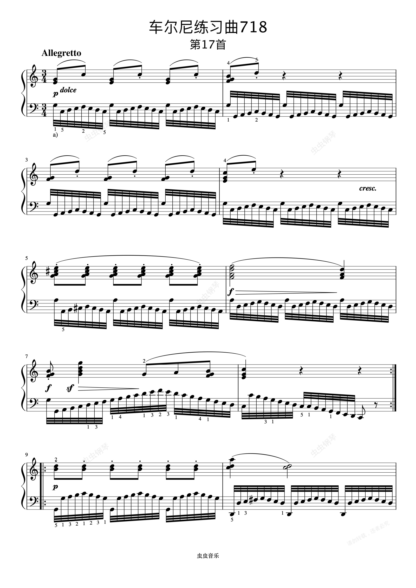 钢琴谱:第17首《车尔尼左手练习曲 作品718》