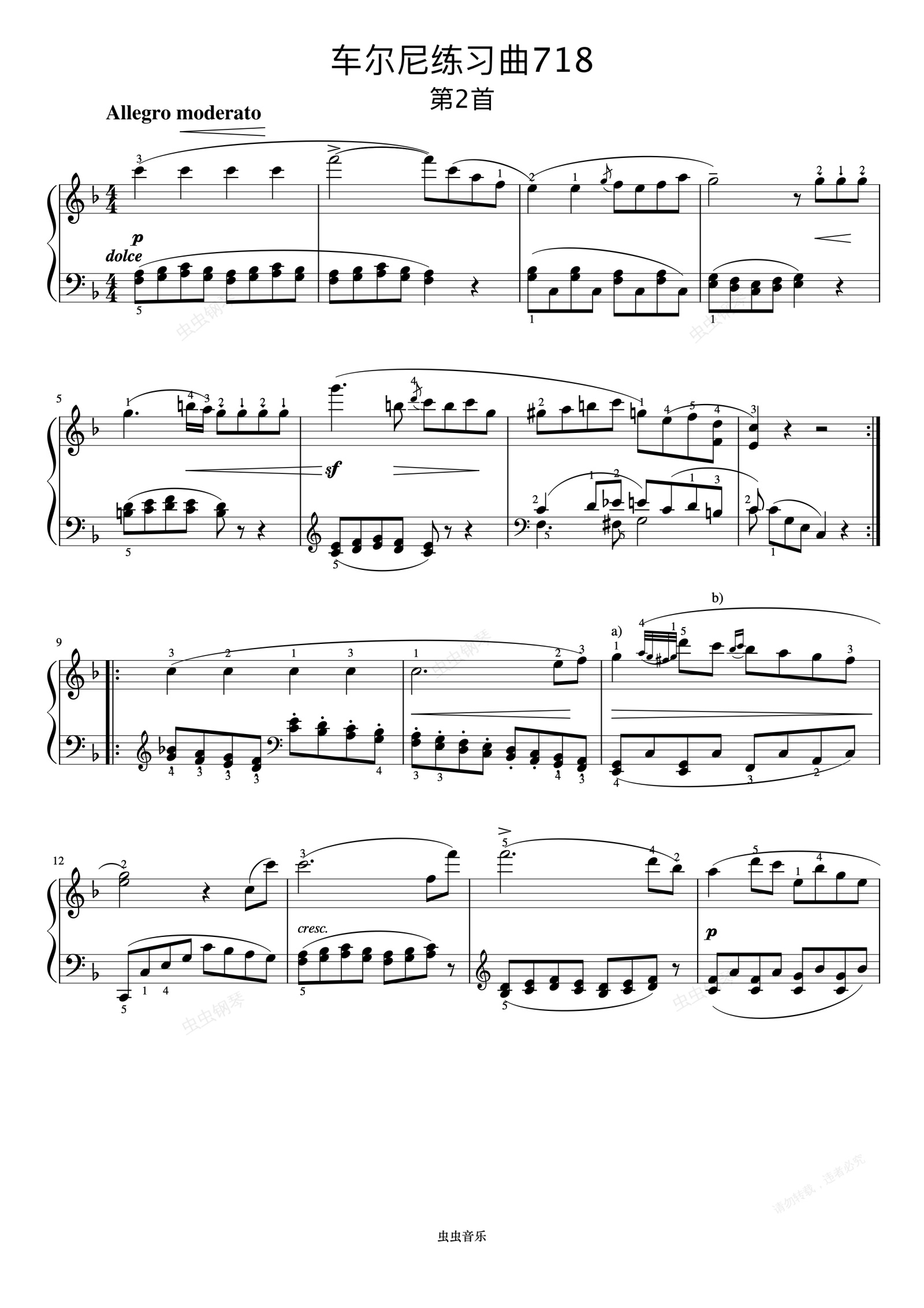 钢琴谱:第2首《车尔尼左手练习曲 作品718》