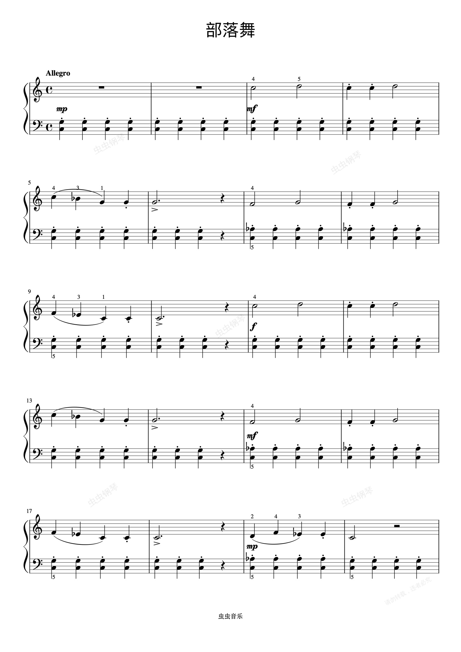 钢琴谱:部落舞《约翰汤普森 简易钢琴教程 3》