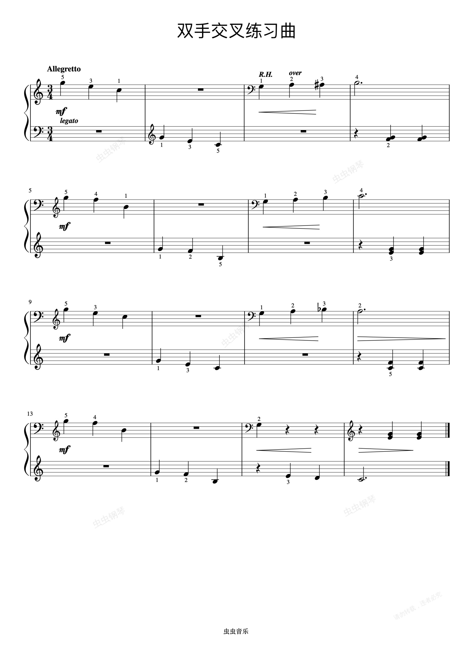 钢琴谱:双手交叉练习曲《约翰汤普森 简易钢琴教程 3》