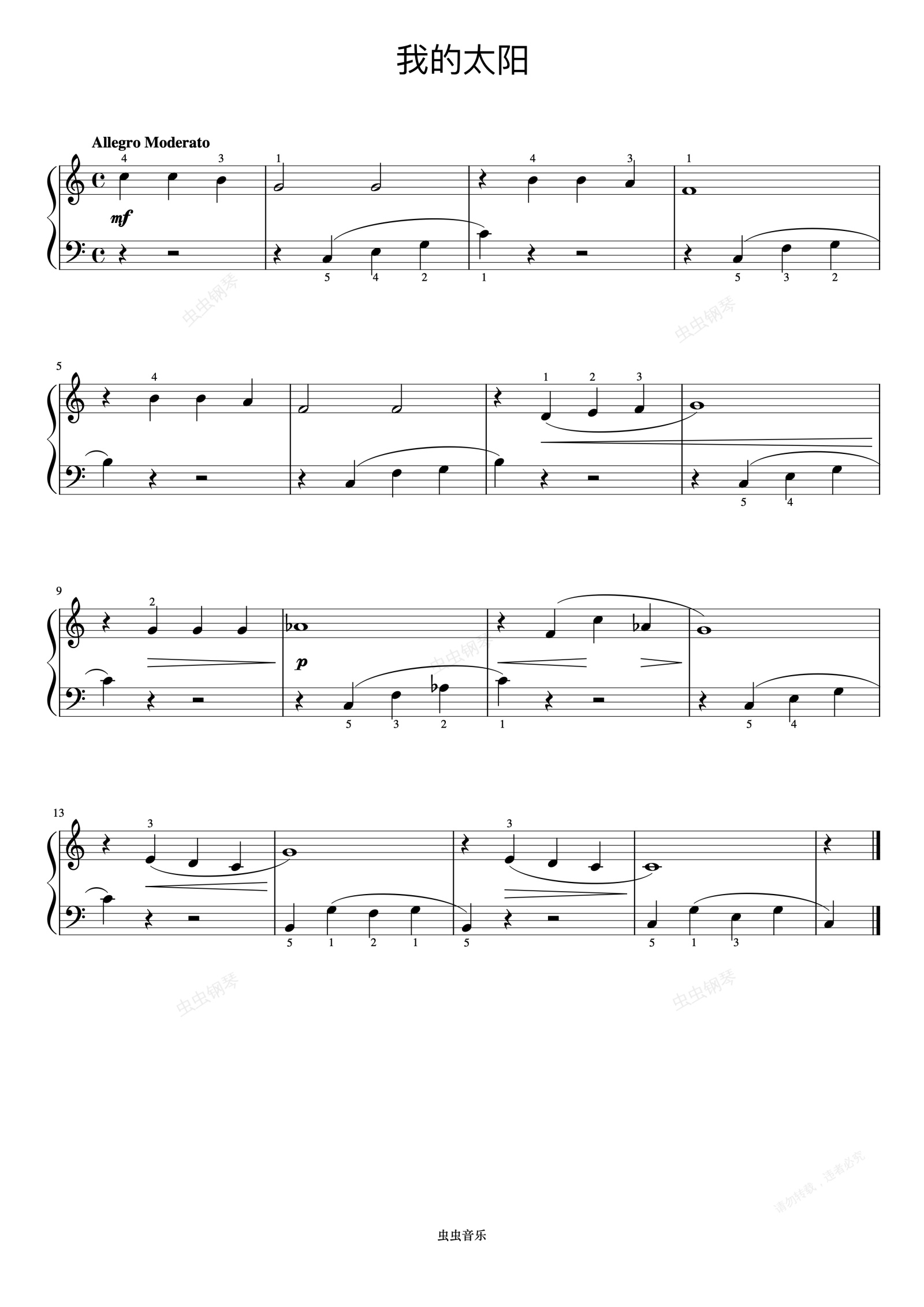 钢琴谱:我的太阳《约翰汤普森 简易钢琴教程 3》