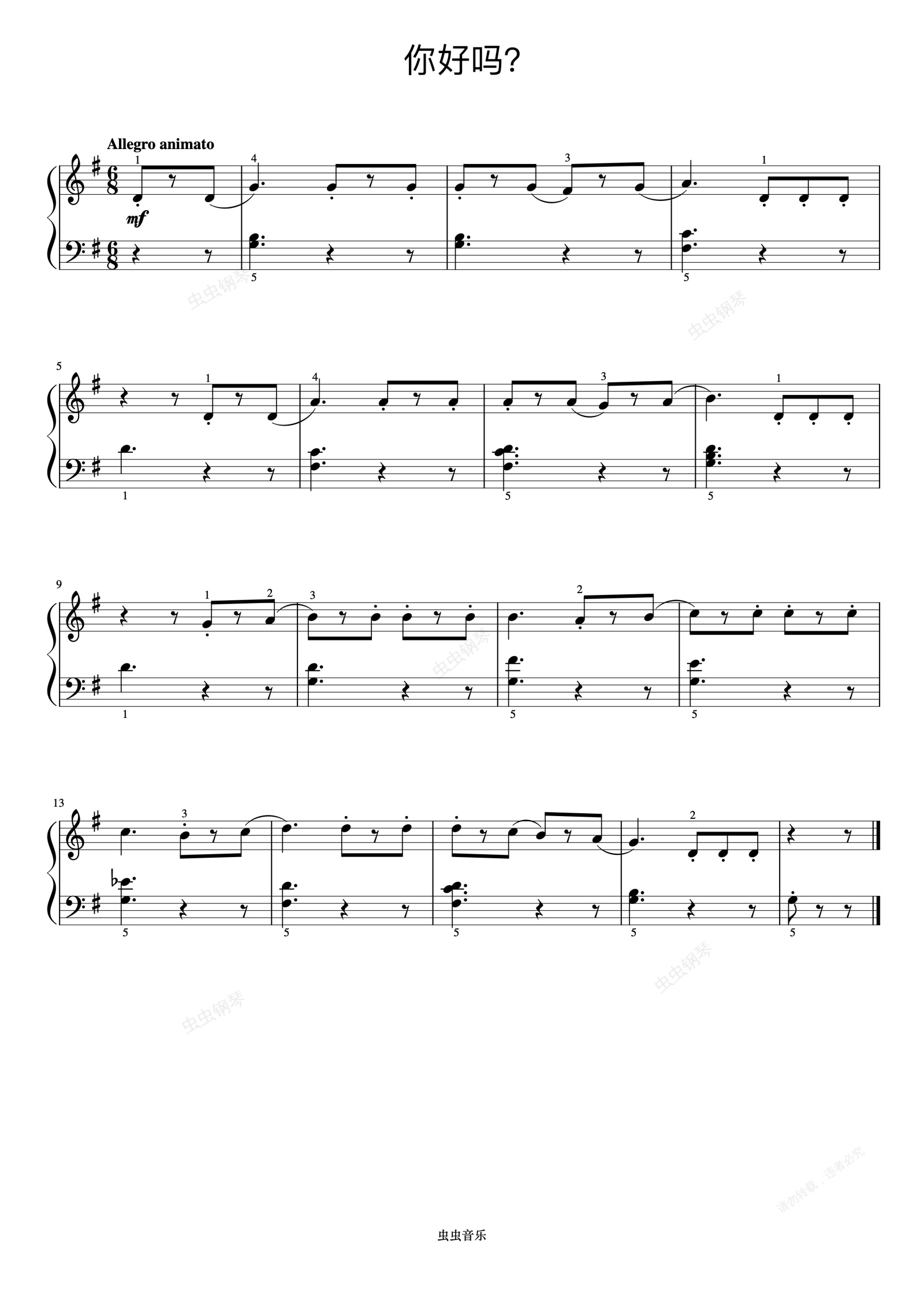 钢琴谱:你好吗《约翰汤普森 简易钢琴教程 3》