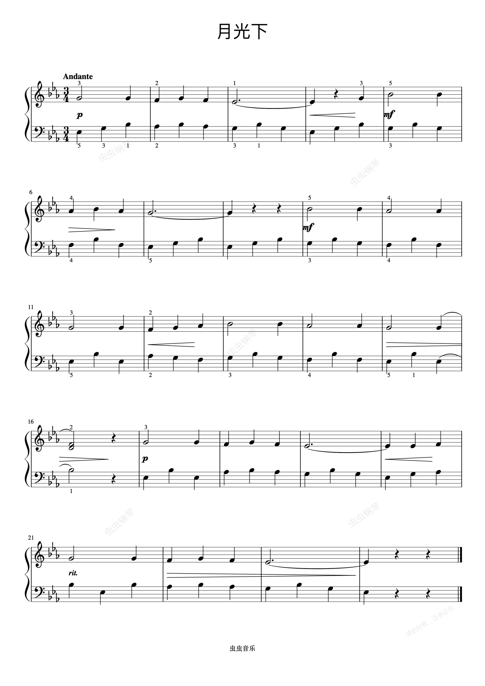 钢琴谱:月光下《约翰汤普森 简易钢琴教程 3》