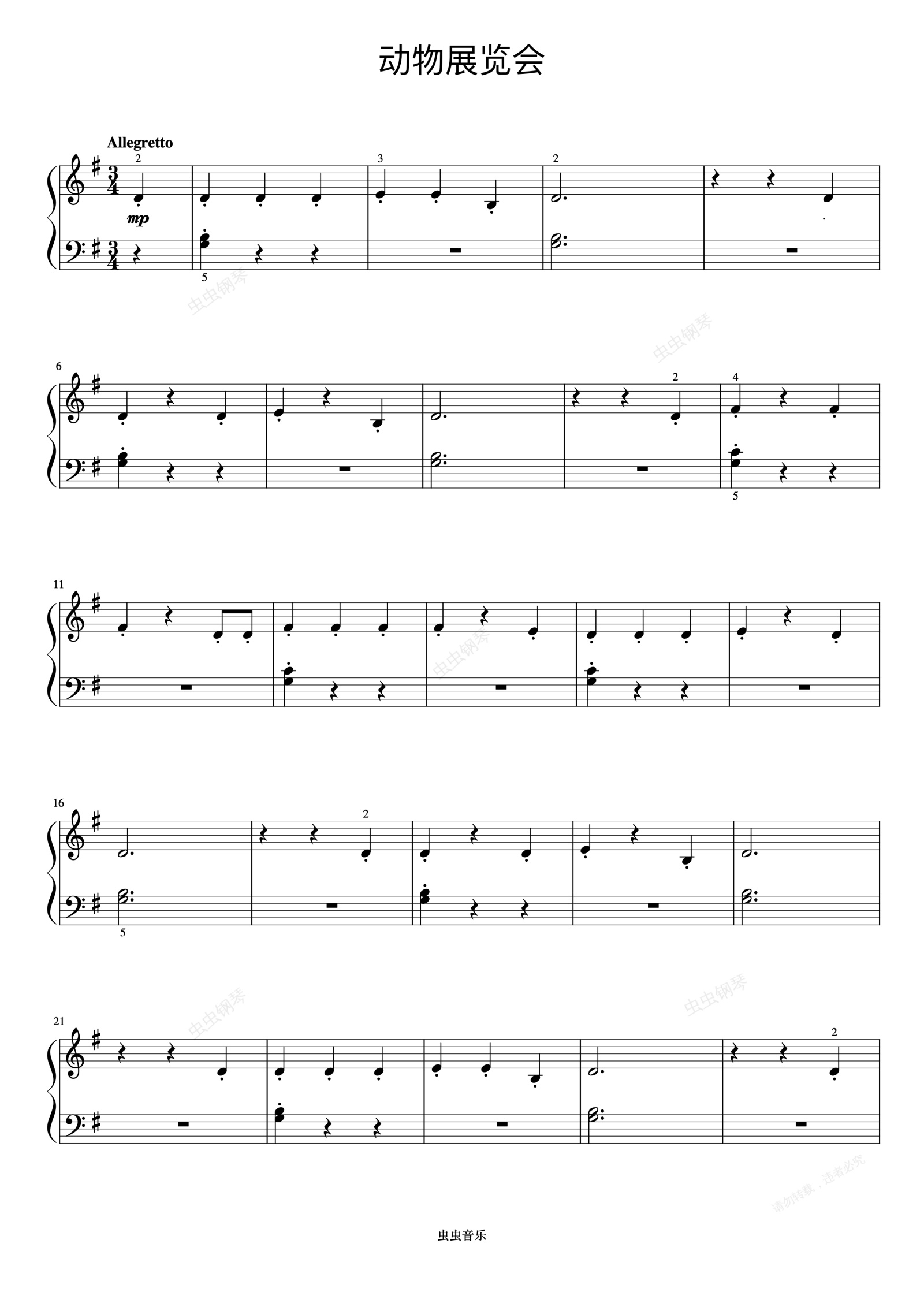 钢琴谱:动物展览会《约翰汤普森 简易钢琴教程 3》