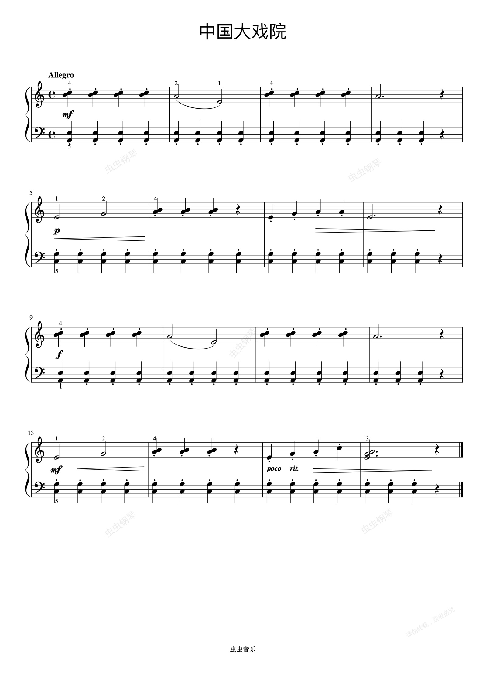 钢琴谱:中国大戏院《约翰汤普森 简易钢琴教程 3》