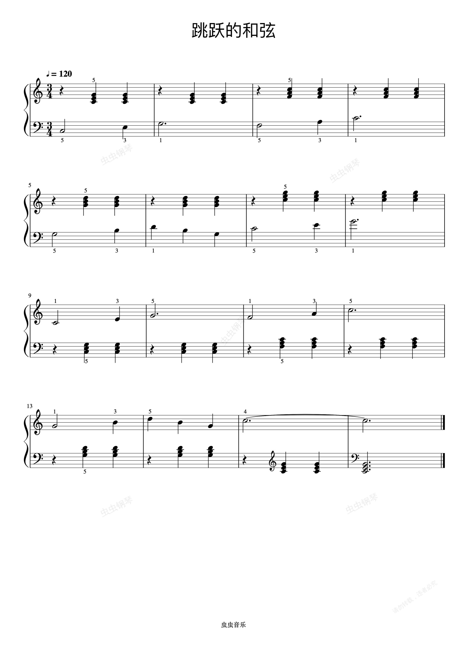 钢琴谱:跳跃的和弦《约翰汤普森 简易钢琴教程 3》