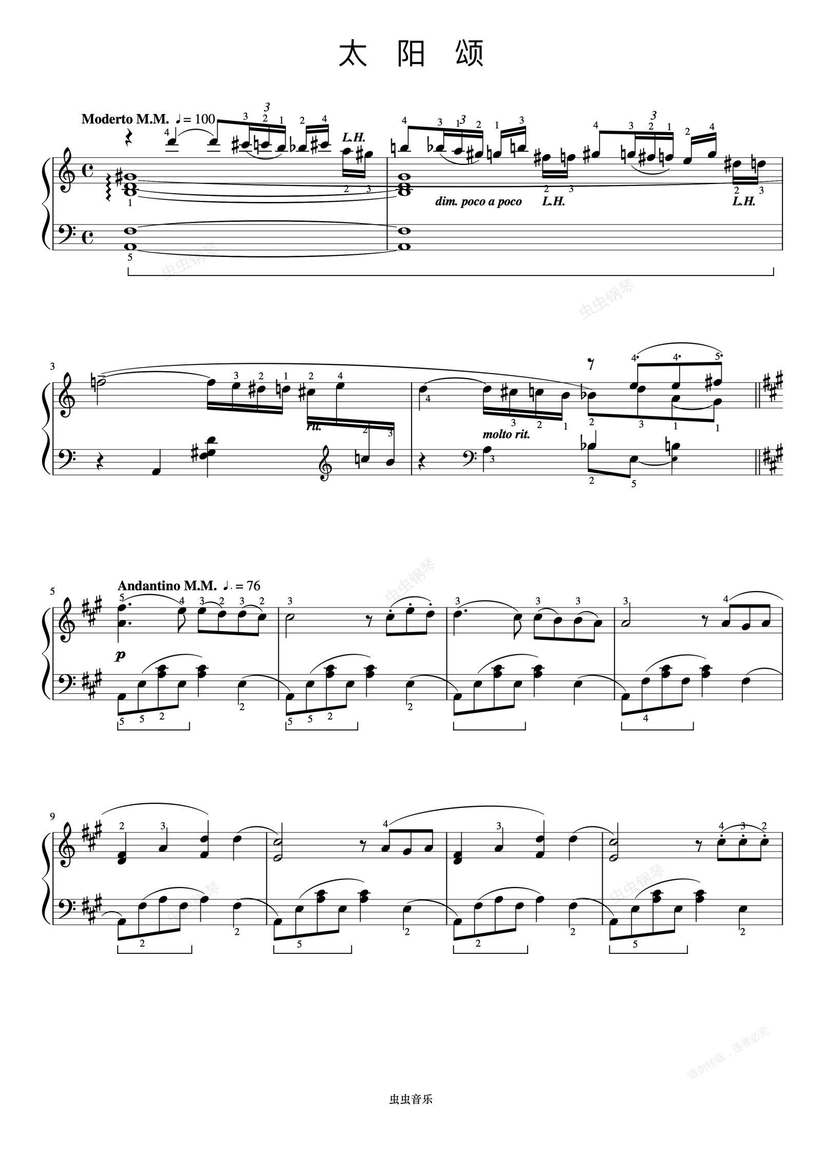 钢琴谱:太阳颂《约翰汤普森 现代钢琴教程3》