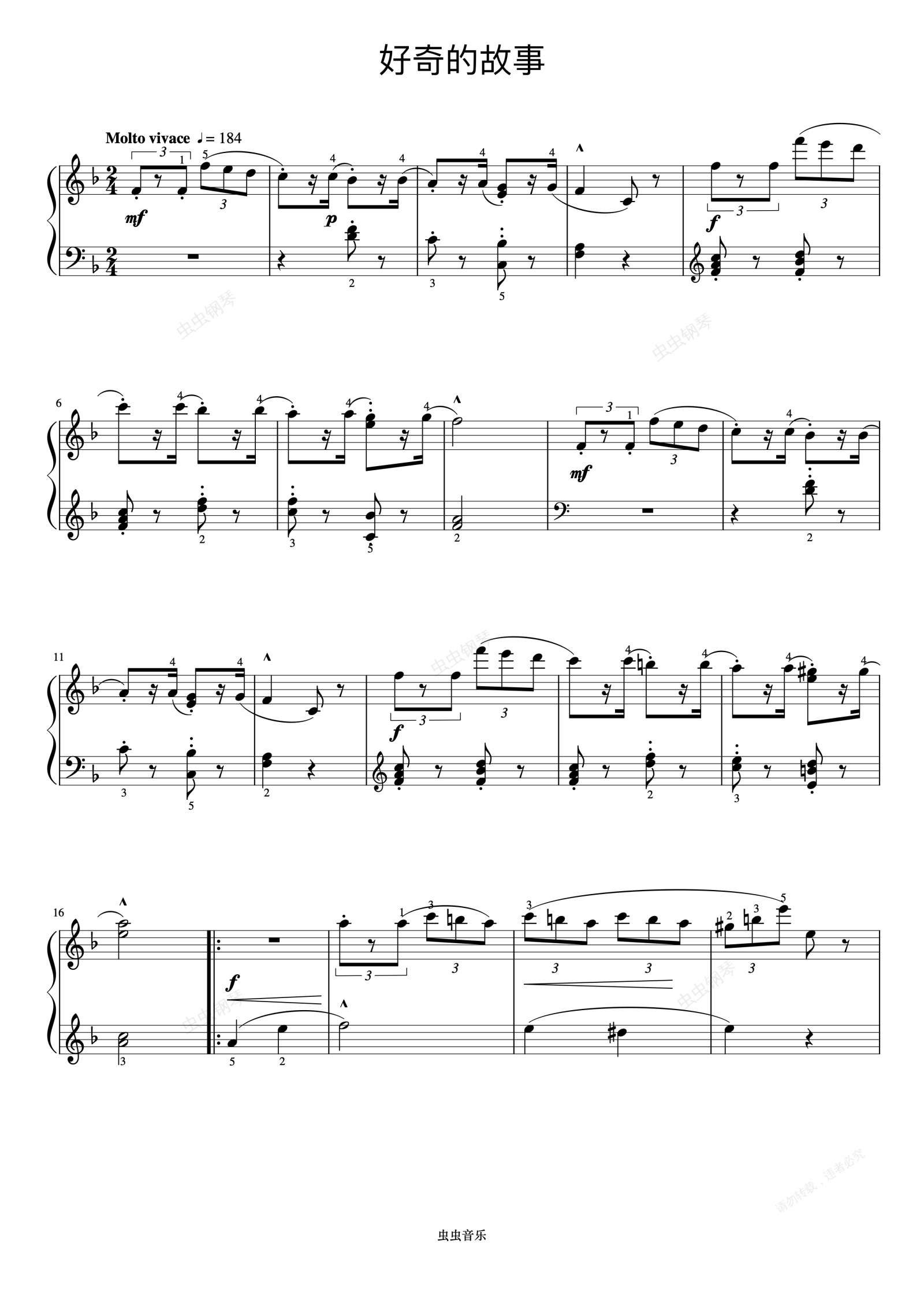 钢琴谱:好奇的故事《约翰汤普森 现代钢琴教程3》