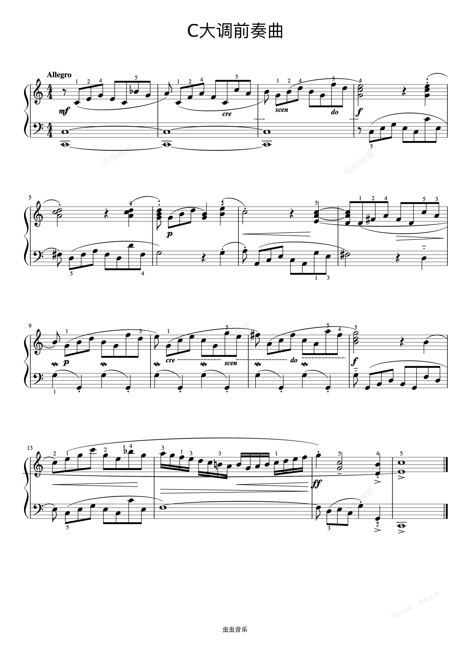 钢琴谱:C大调前奏曲《约翰汤普森 现代钢琴教程3》
