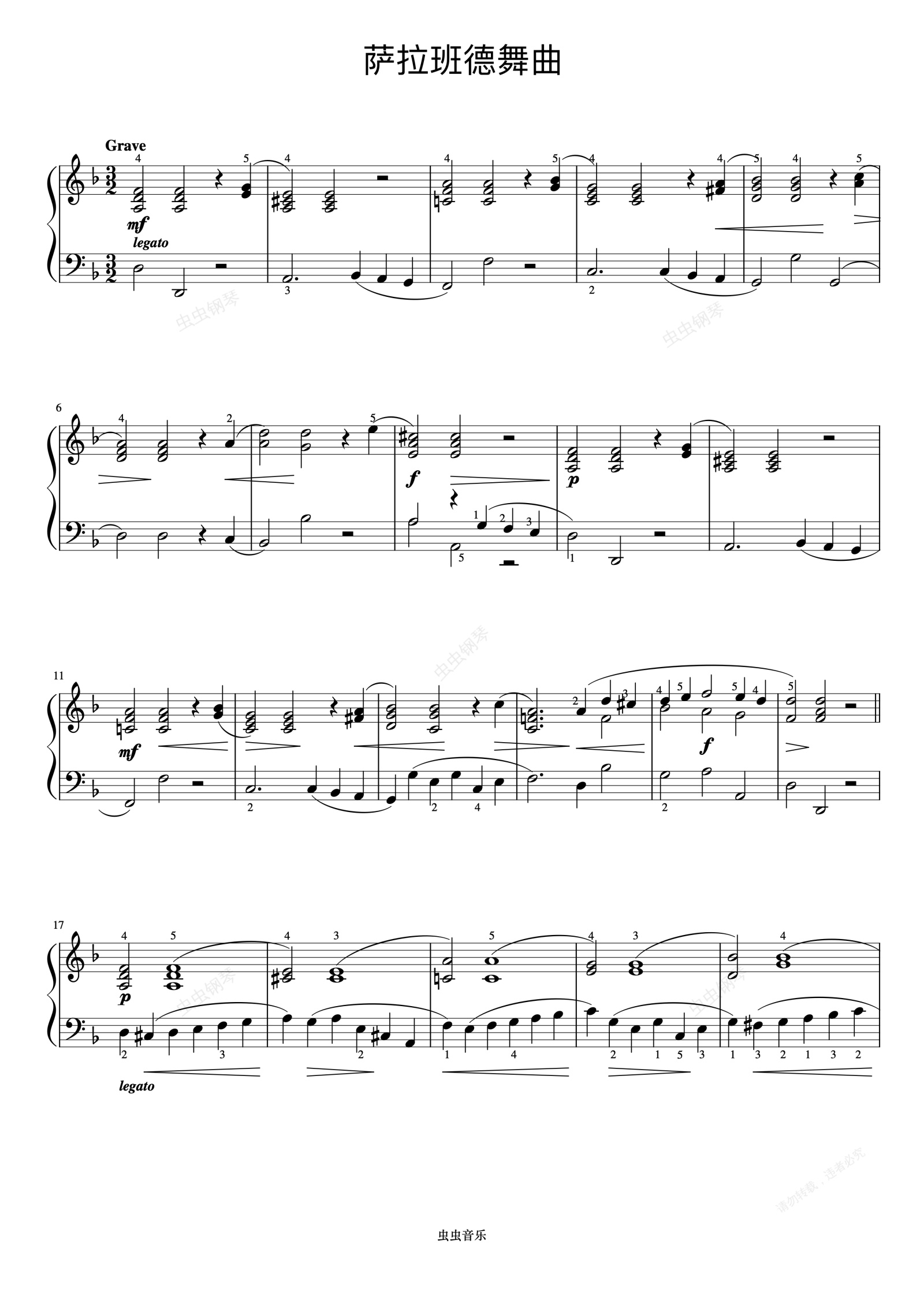 钢琴谱:萨拉班德舞曲《约翰汤普森 现代钢琴教程3》
