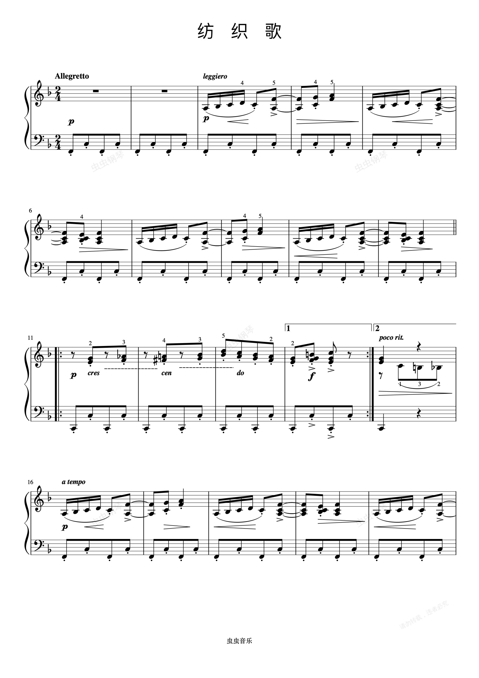 钢琴谱:纺织歌《约翰汤普森 现代钢琴教程3》