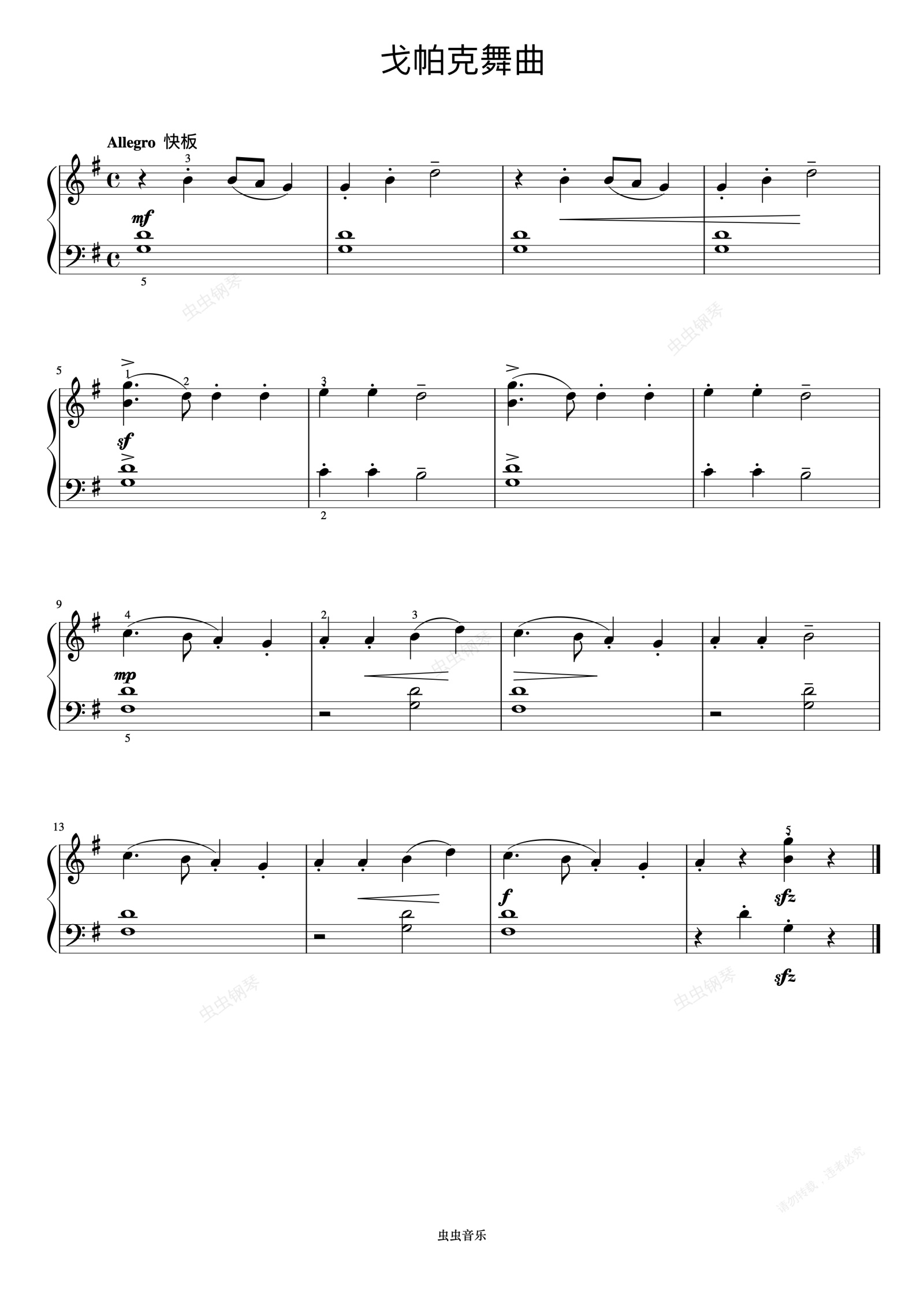 钢琴谱:戈帕克舞曲《约翰汤普森 简易钢琴教程 4》