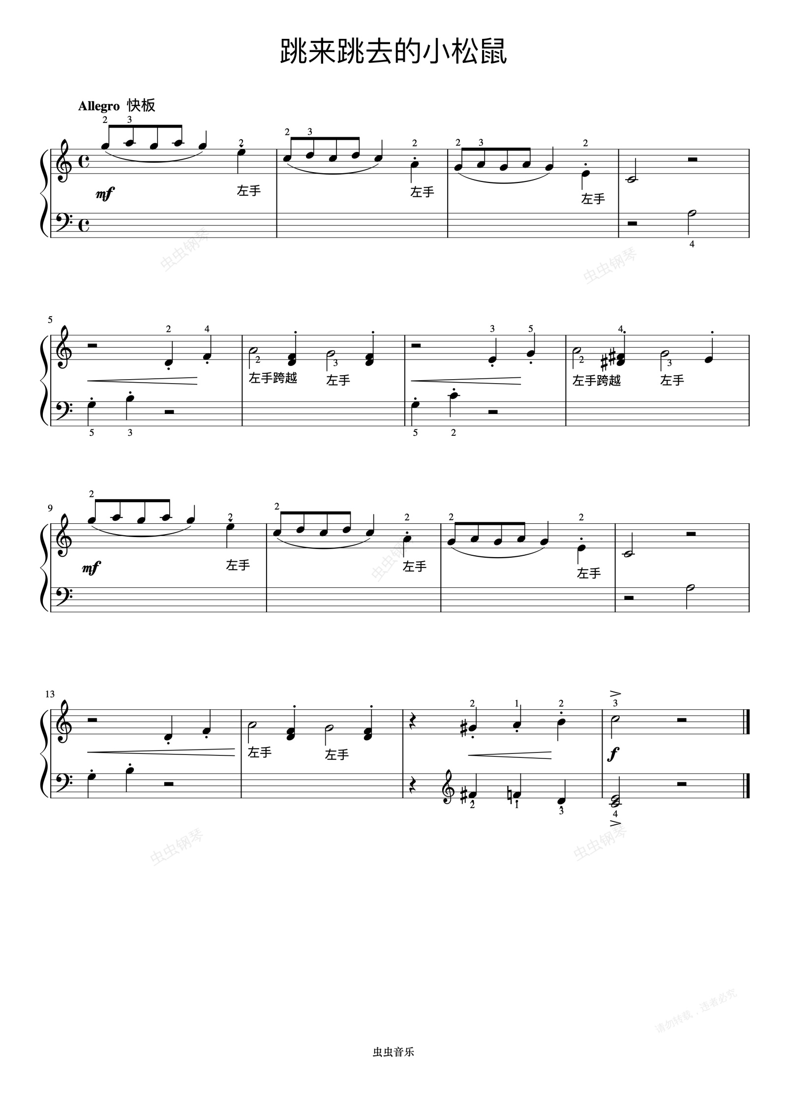 钢琴谱:跳来跳去的小松鼠《约翰汤普森 简易钢琴教程 4》