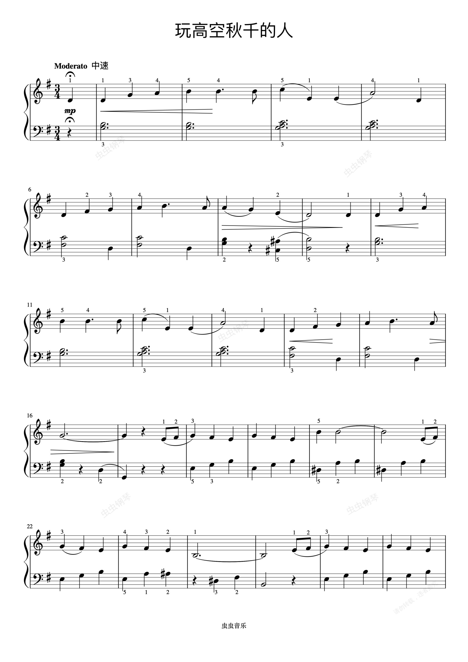 钢琴谱:玩高空秋千的人《约翰汤普森 简易钢琴教程 4》