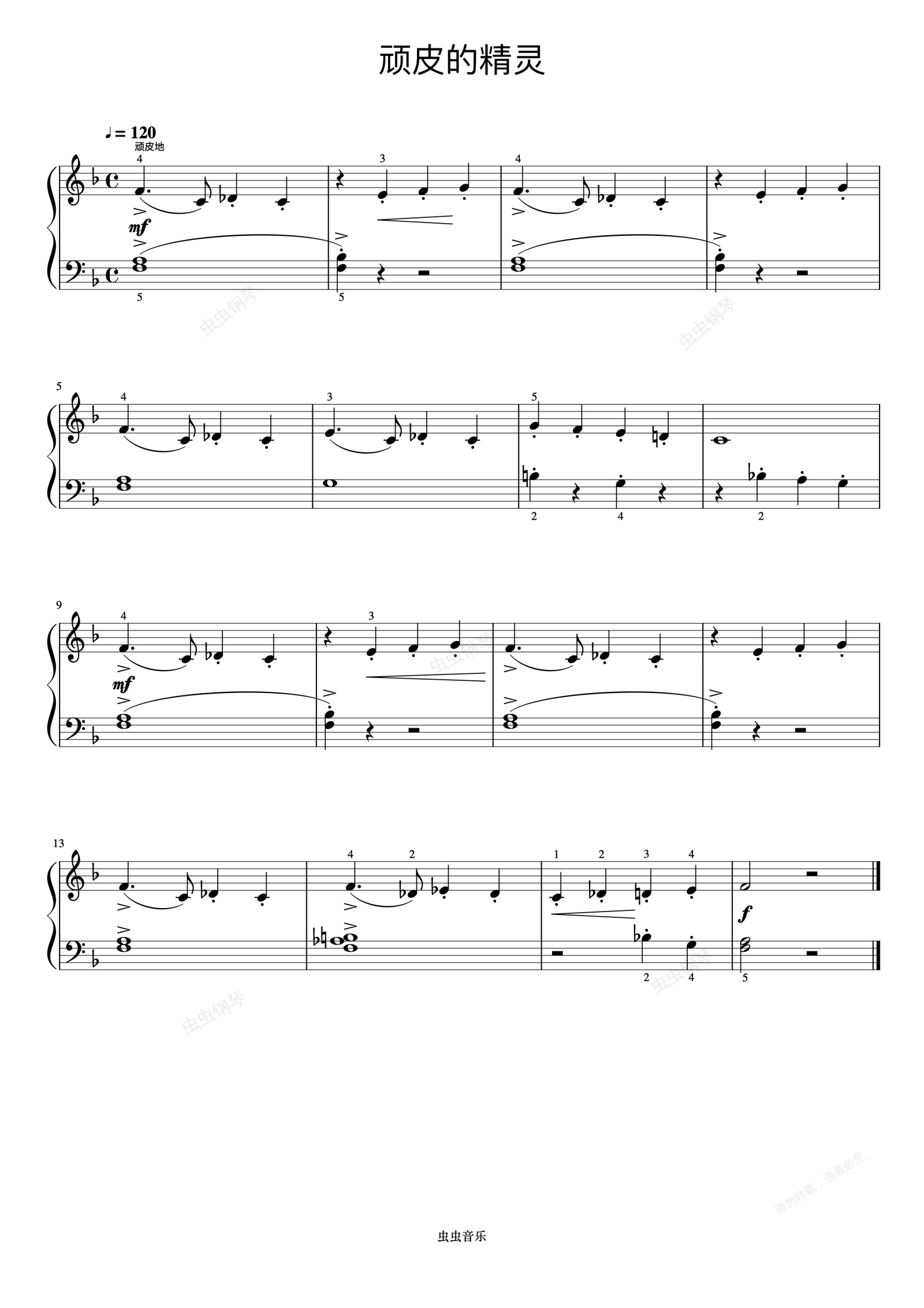 钢琴谱:顽皮的精灵《约翰汤普森 简易钢琴教程 4》