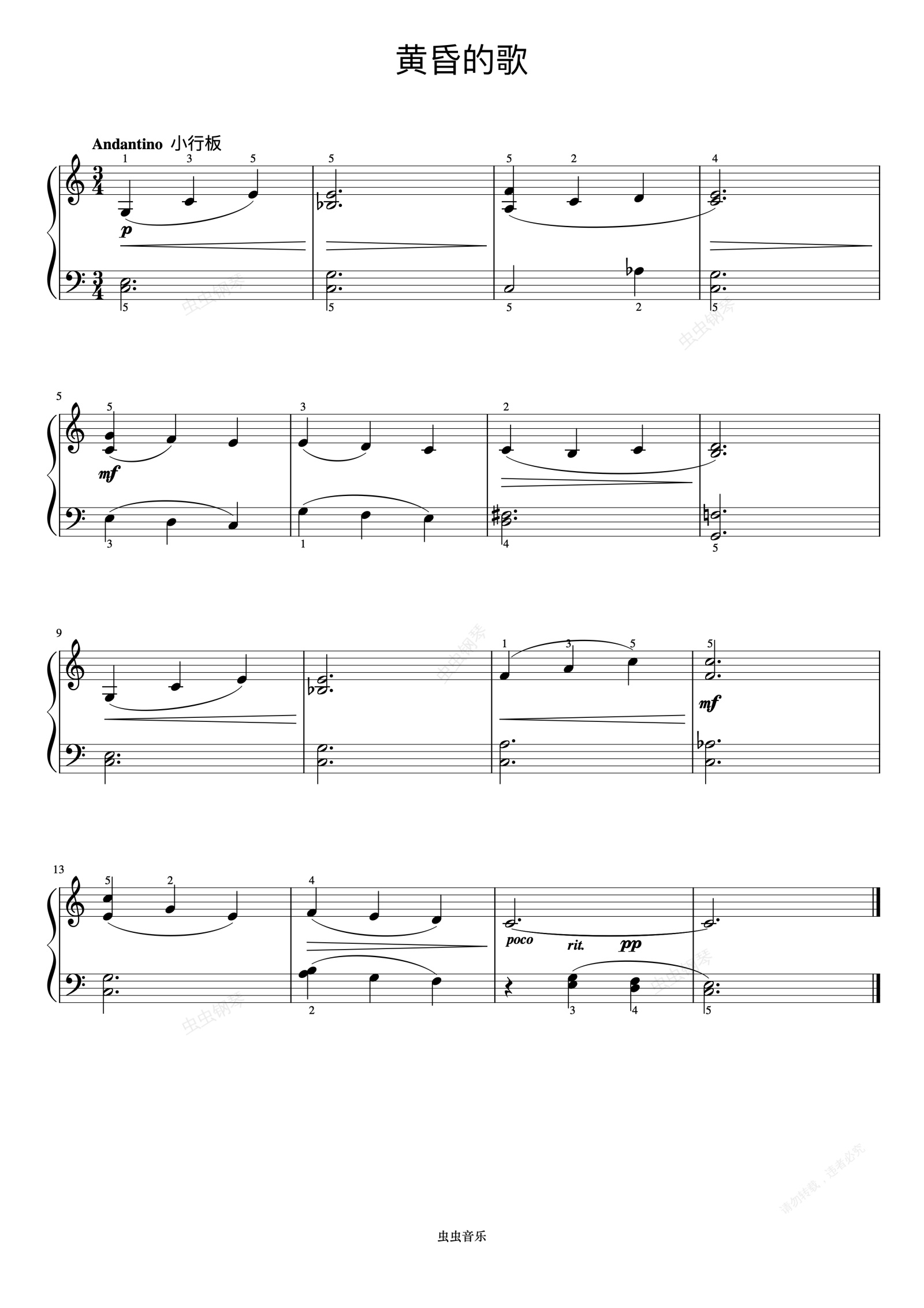 钢琴谱:黄昏的歌《约翰汤普森 简易钢琴教程 4》