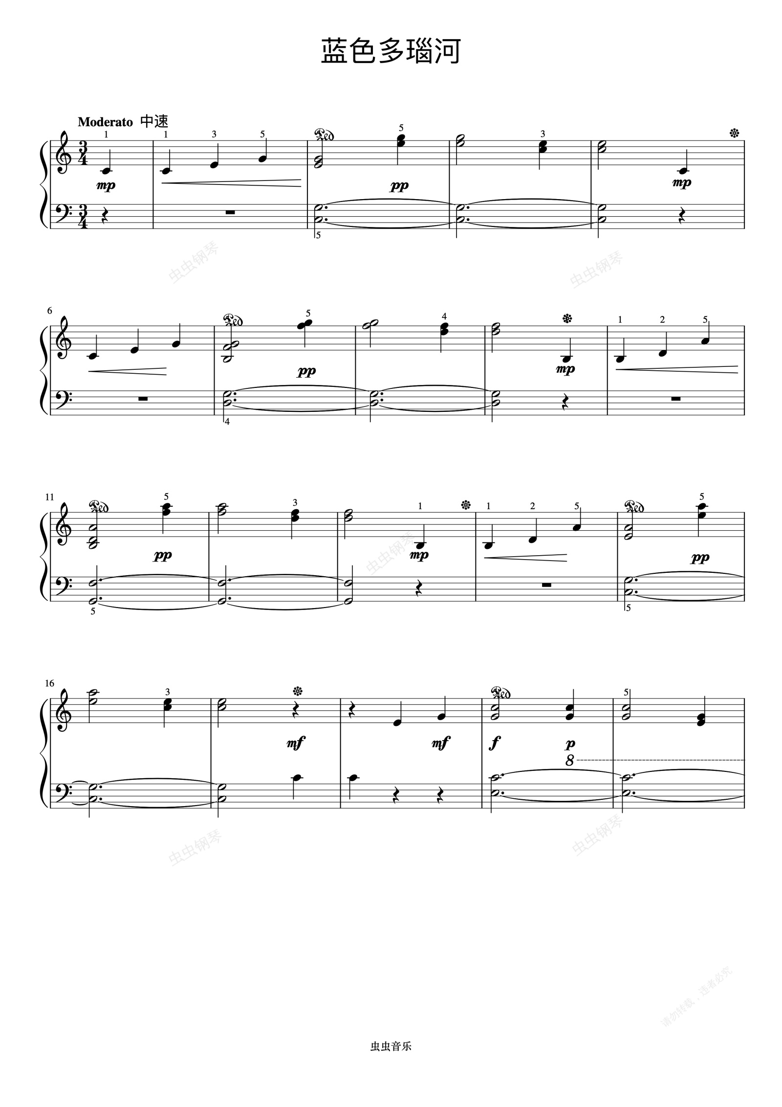 钢琴谱:蓝色多瑙河《约翰汤普森 简易钢琴教程 4》